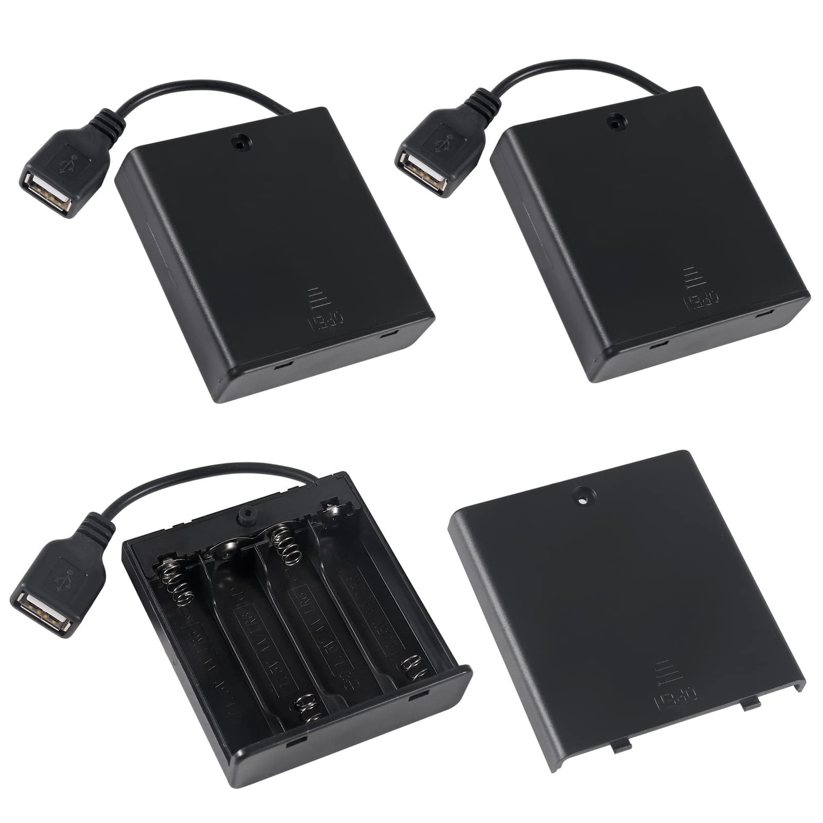 3pcs 4 AA Battery Holder with USB Female Socket, On/Off Switch Case Cover
