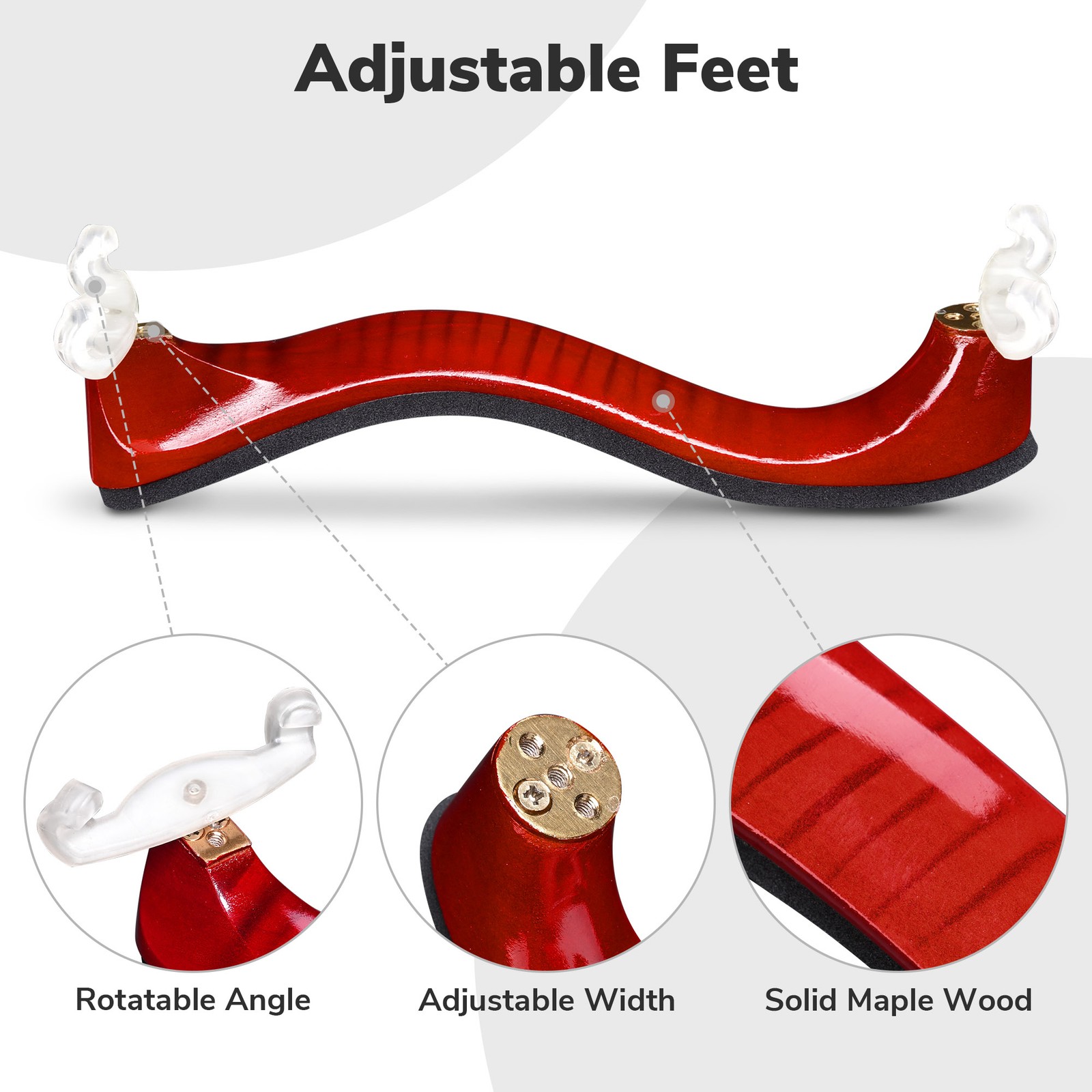 Wooden Violin Shoulder Rest for 3/4 4/4 Violin with Mute Adjustable Feet Fiddler