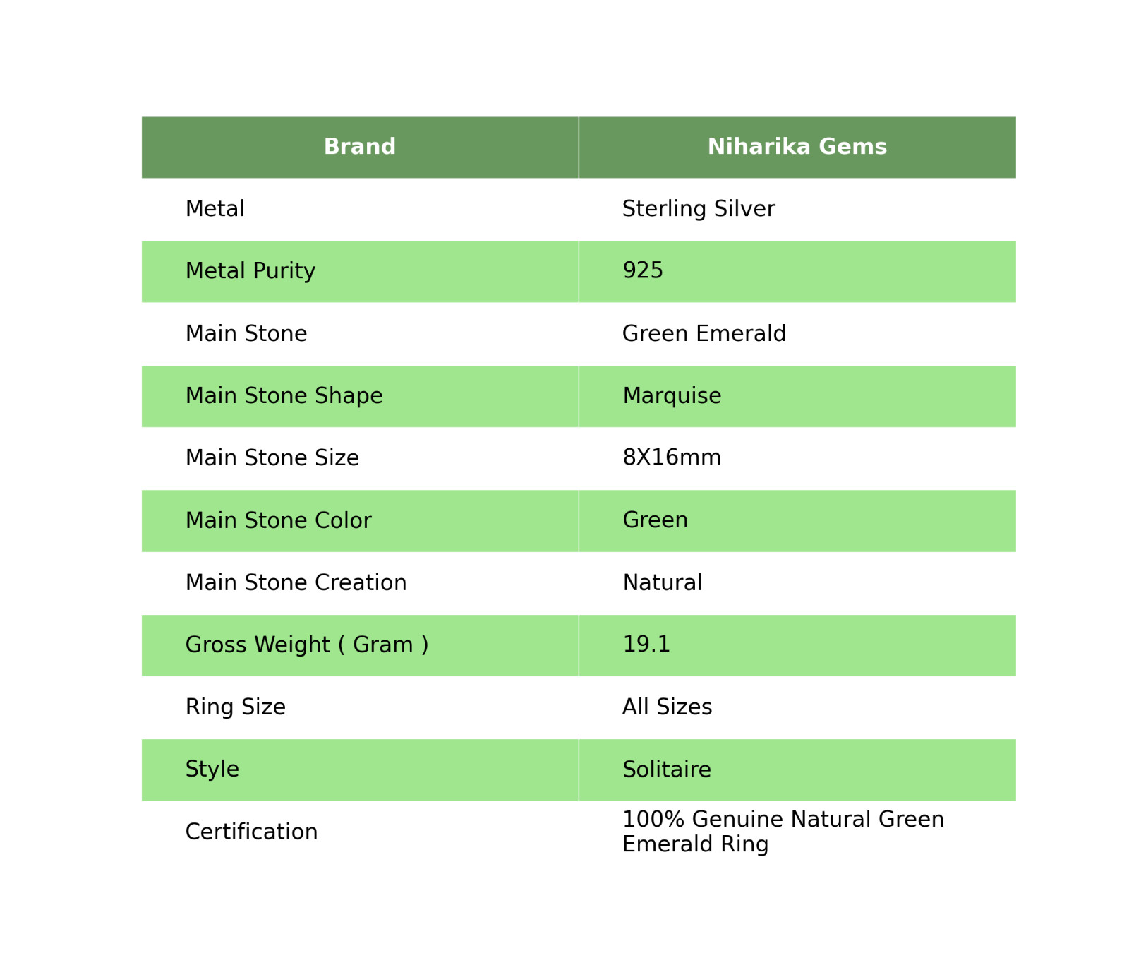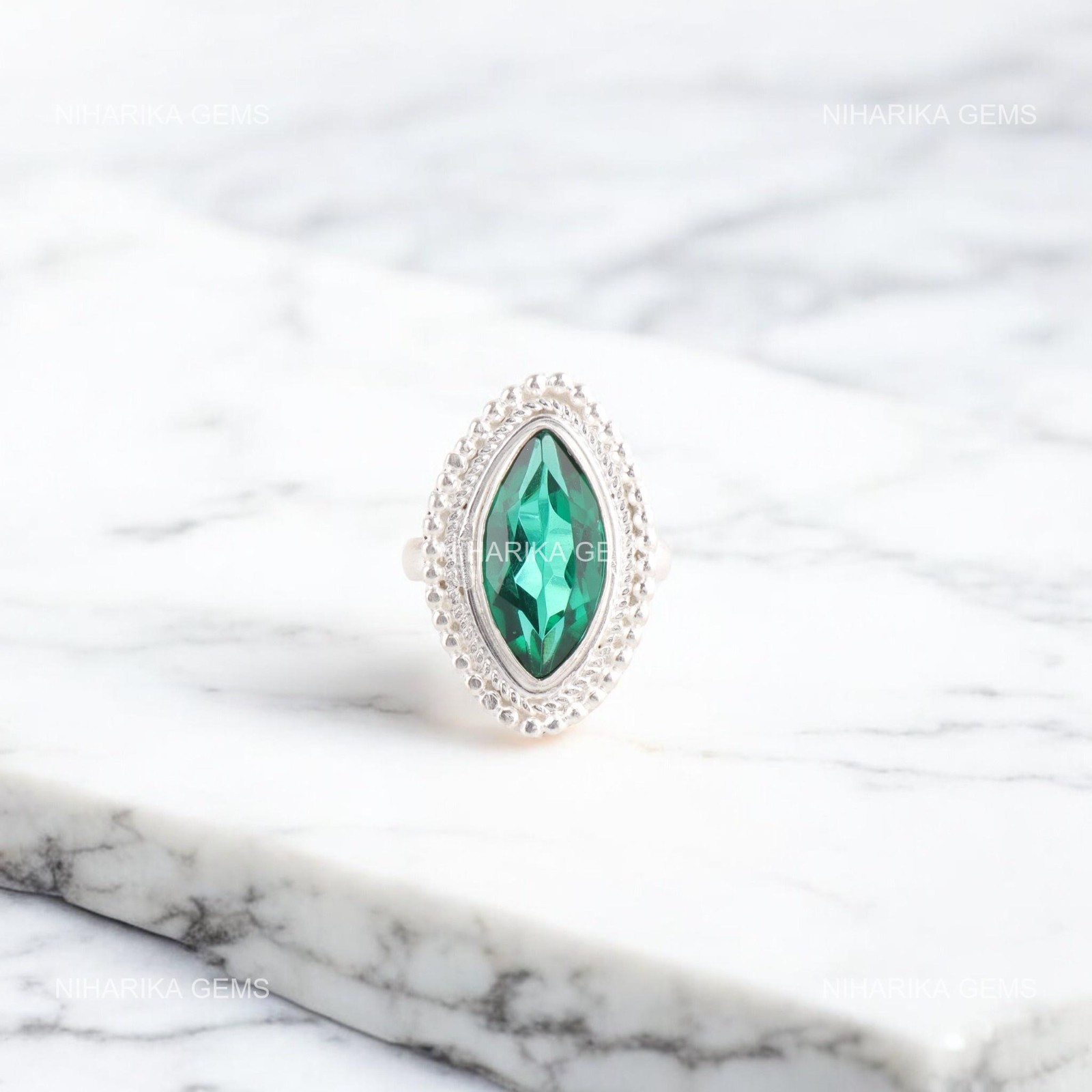 Natural Green Emerald 925 Sterling Silver Solitaire Daughter Unique Ring Jewelry