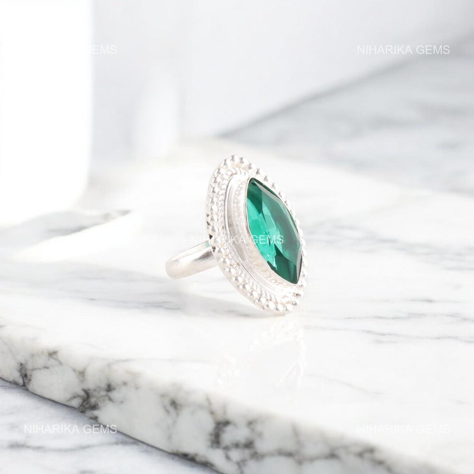 как выглядит Natural Green Emerald 925 Sterling Silver Solitaire Daughter Unique Ring Jewelry фото