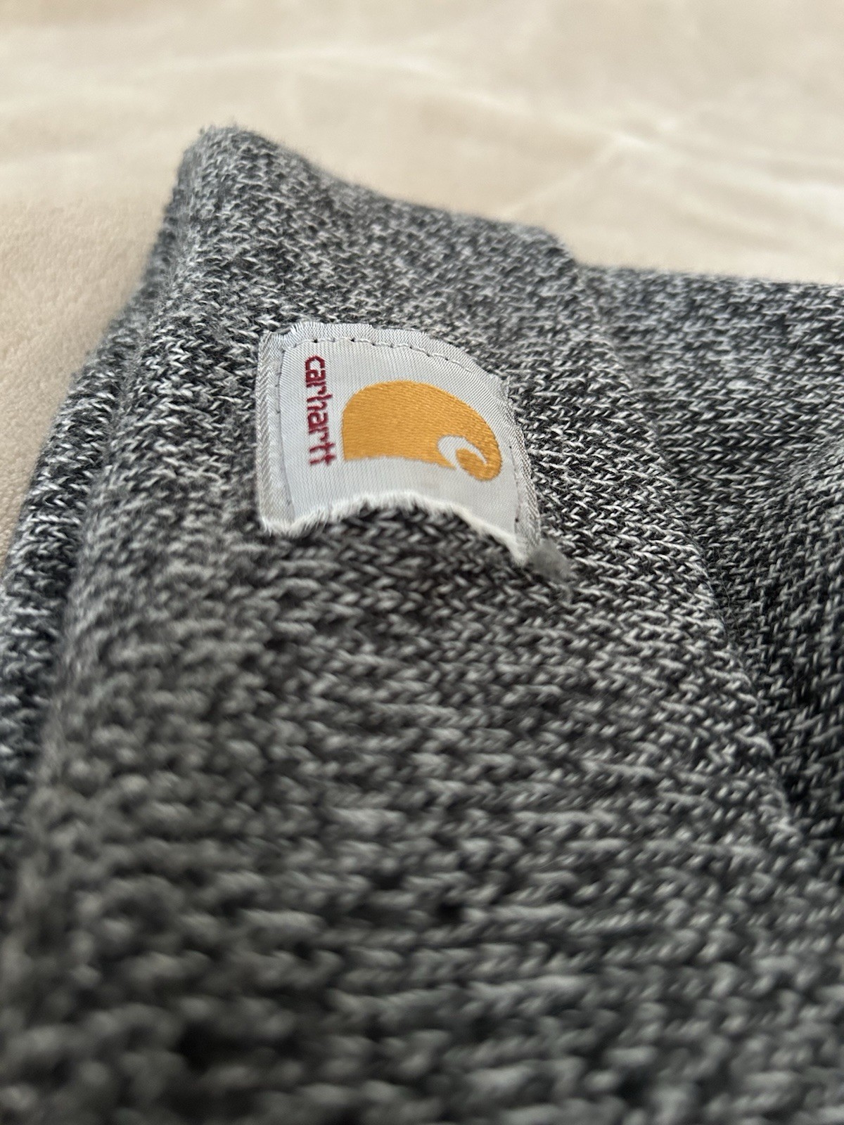 Carhartt Hat Mens One Size Gray Cuffed Beanie Cap Knit Logo Workwear Outdoors