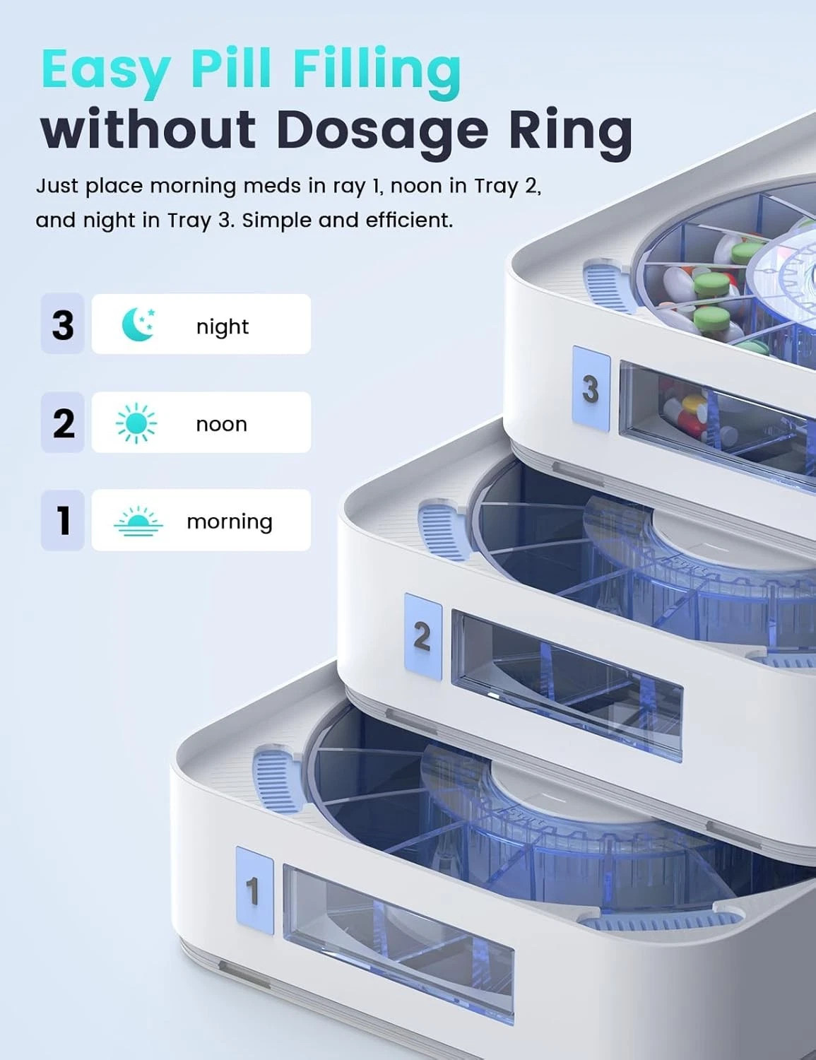 Feature3: 3-Tray Design for Flexible Dosing