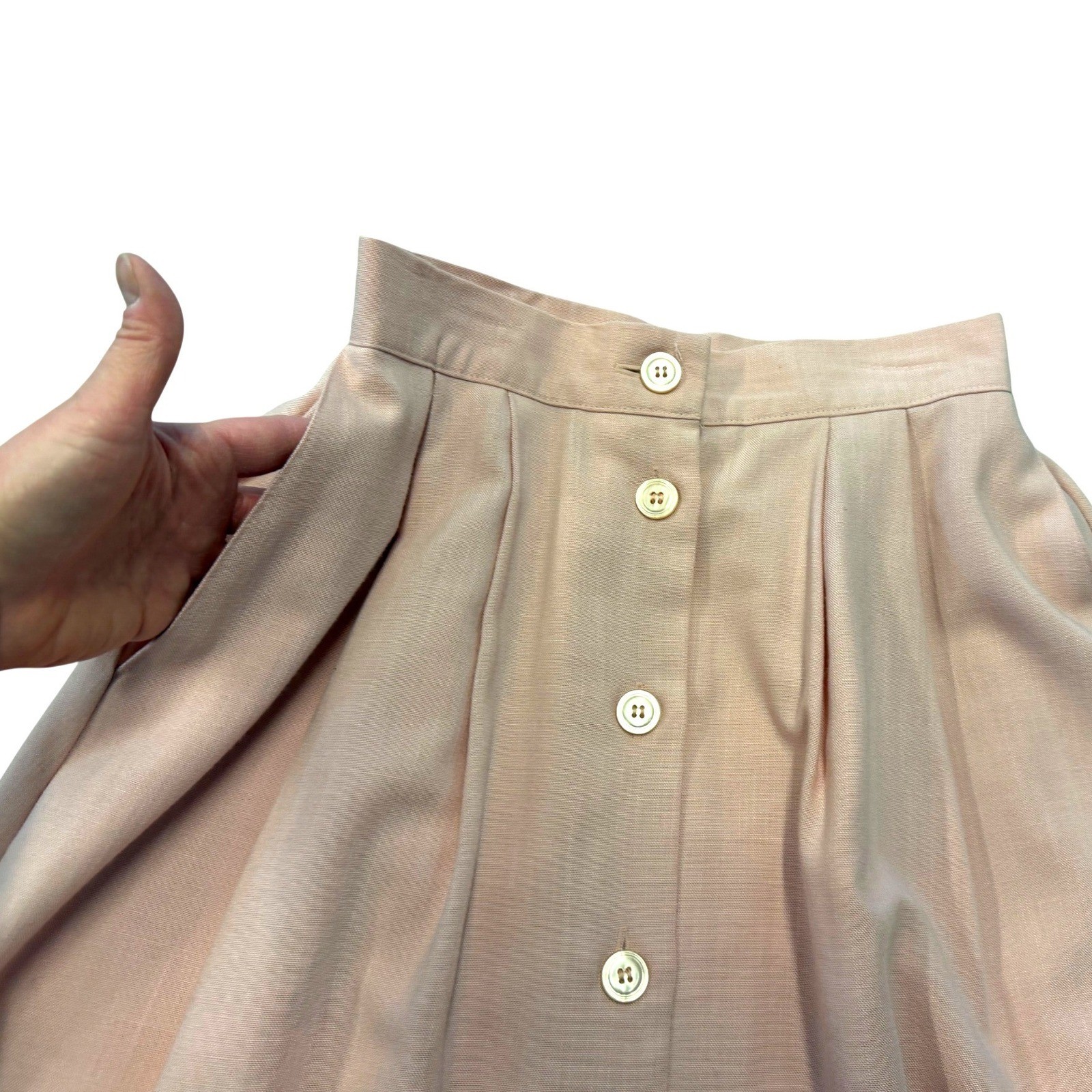 как выглядит Vintage Thats Me Size 7 8 Pink Pleated Button Front Midi Skirt Pockets 90s фото