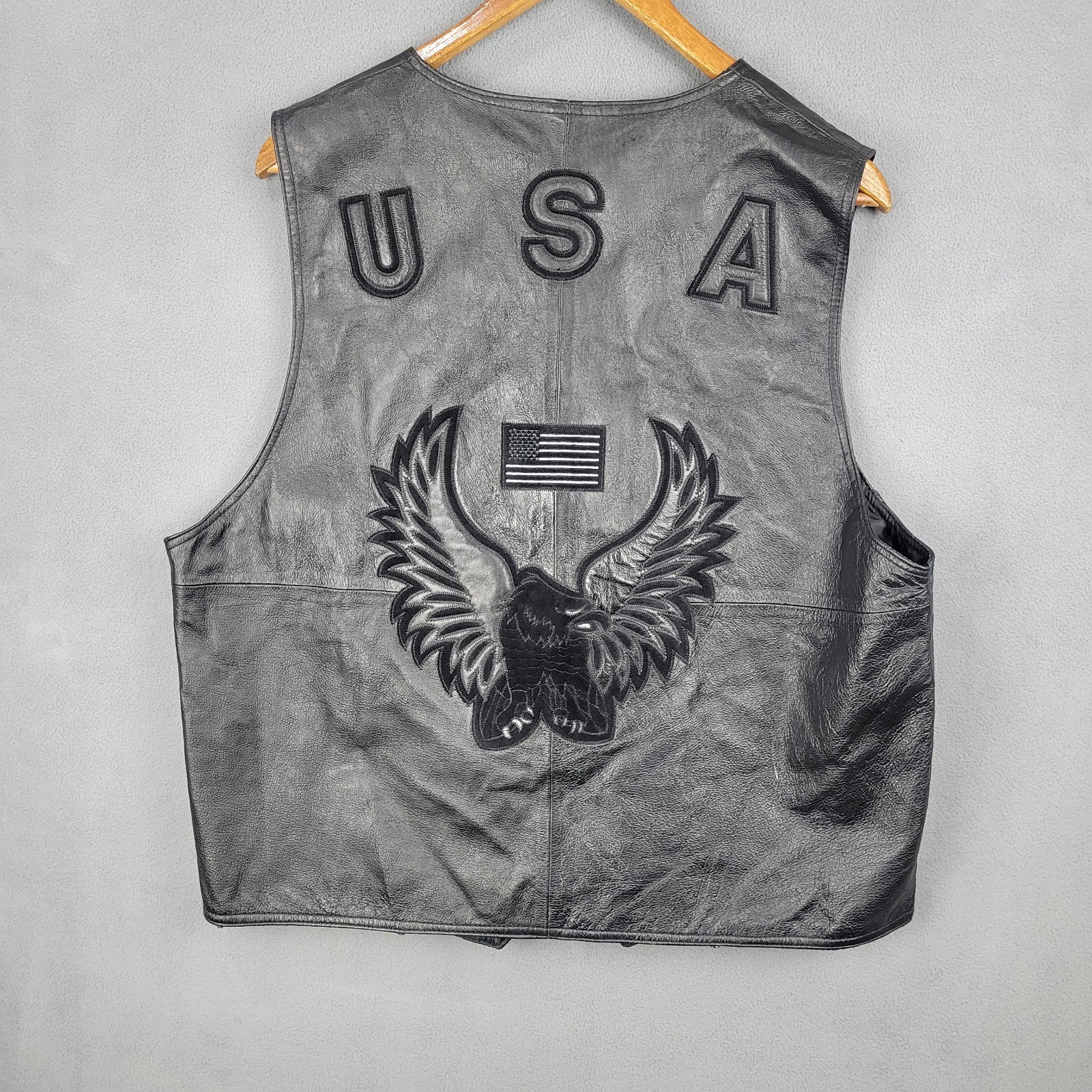 как выглядит USA Leather Motorcycles Biker Vest Mens XL Black Classic Genuine Western фото