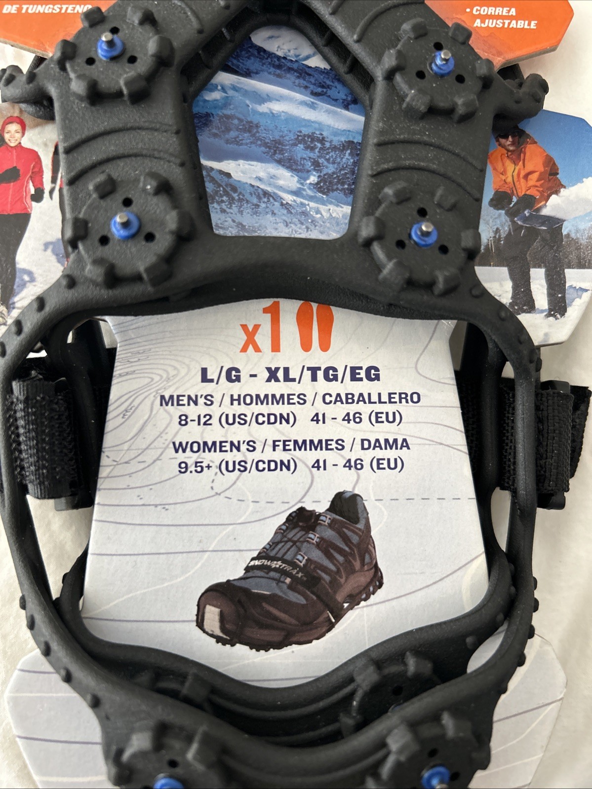 YakTrax Snow Trax Mens L-XL Traction Spikes for Shoes Straps NEW