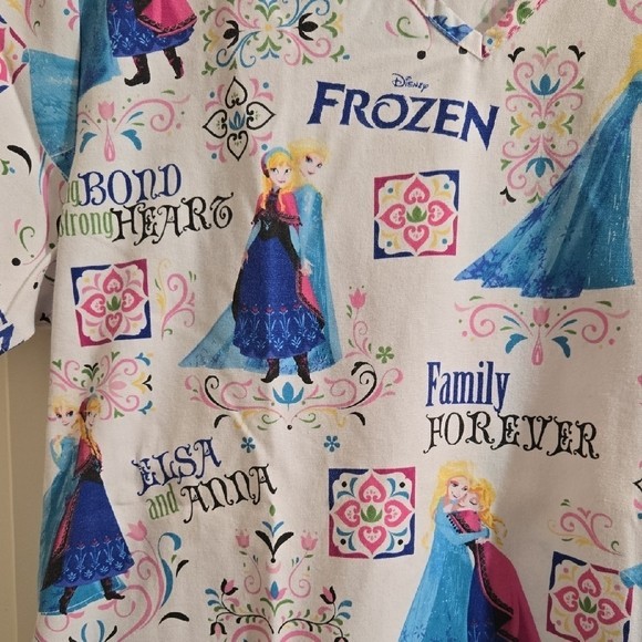 Disney Frozen Cotton Anna Elsa Pediatric Nurse Scrub Shirt Short Sleeve Small
