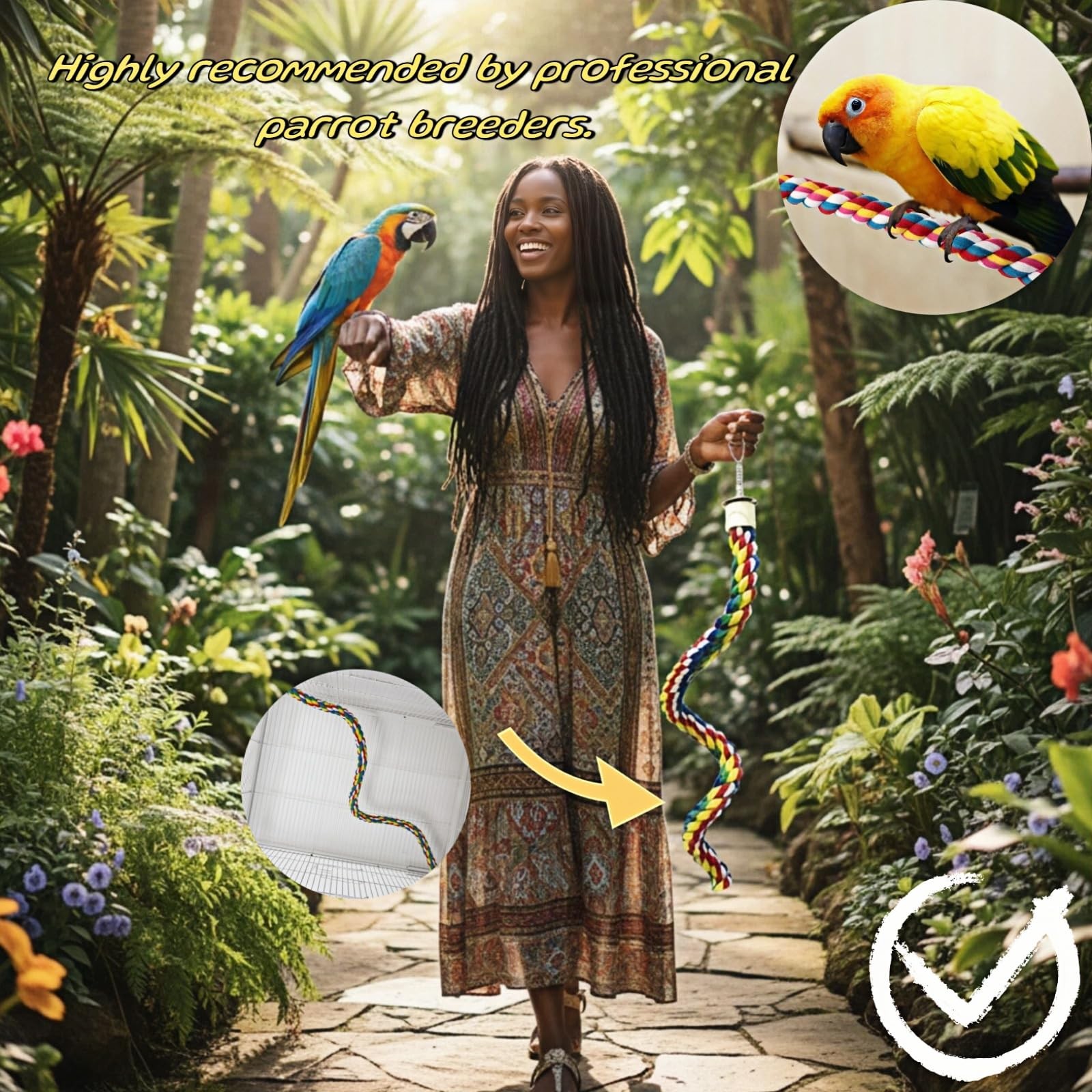 как выглядит Geettcaifu Bird Rope Perches, Parrot Toys, Bungee Perches 40cm, Colorful фото