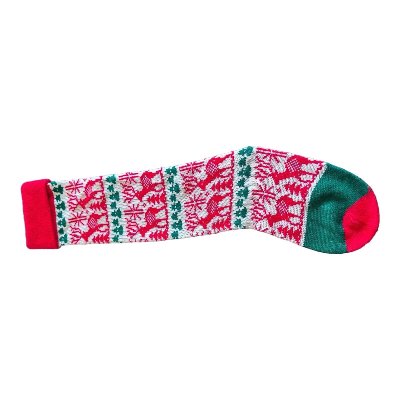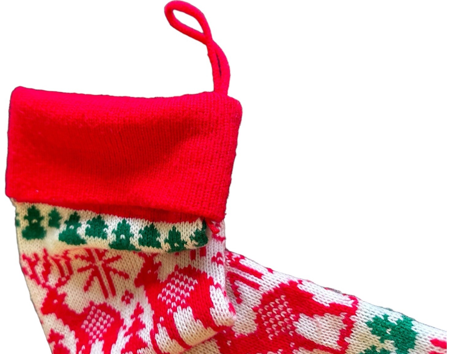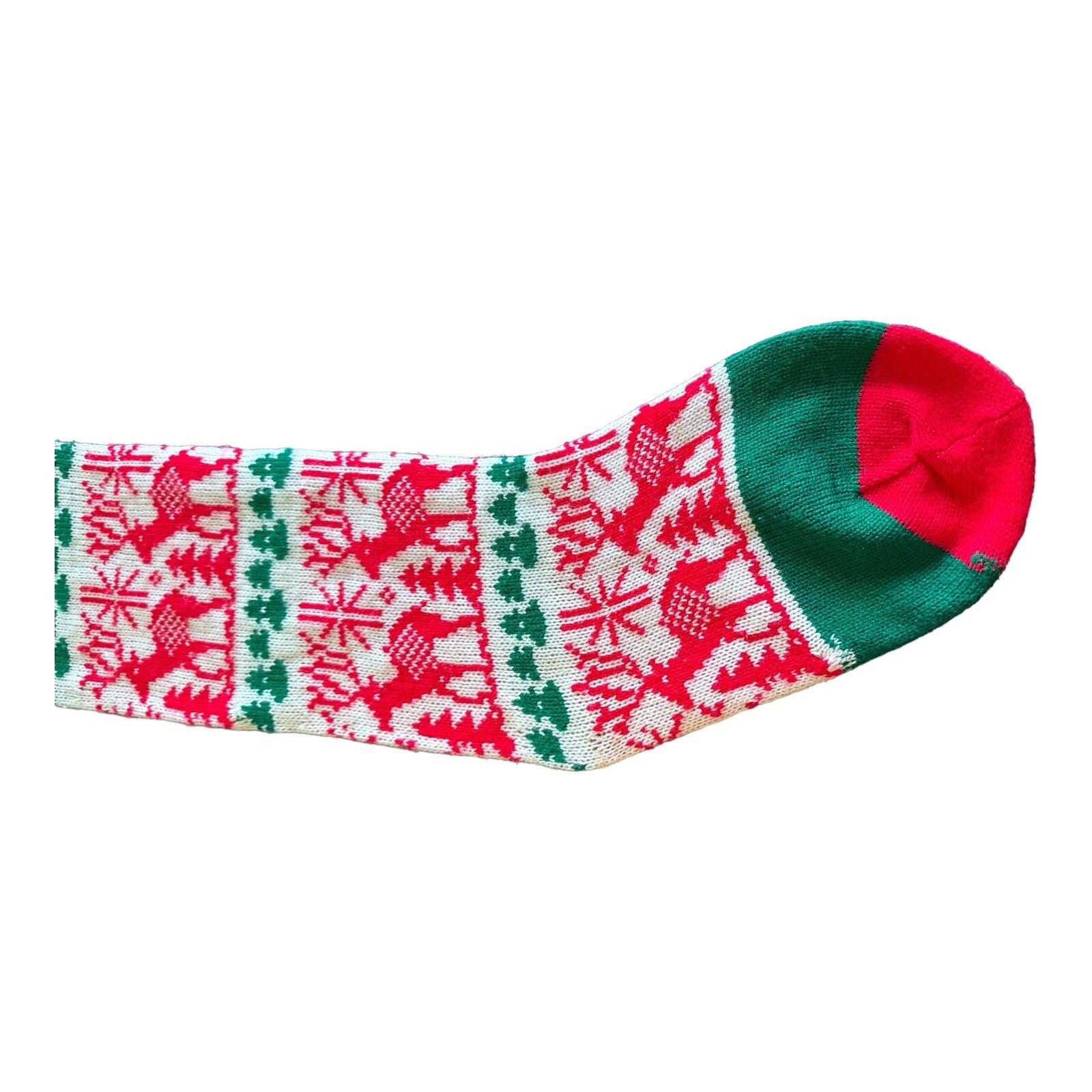 Vintage Reindeer Snowflakes Trees Knitted Christmas Stocking Long 26