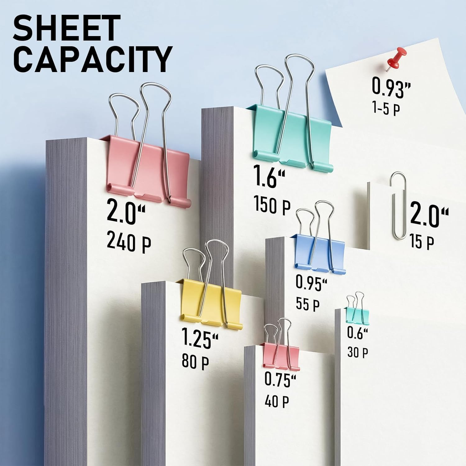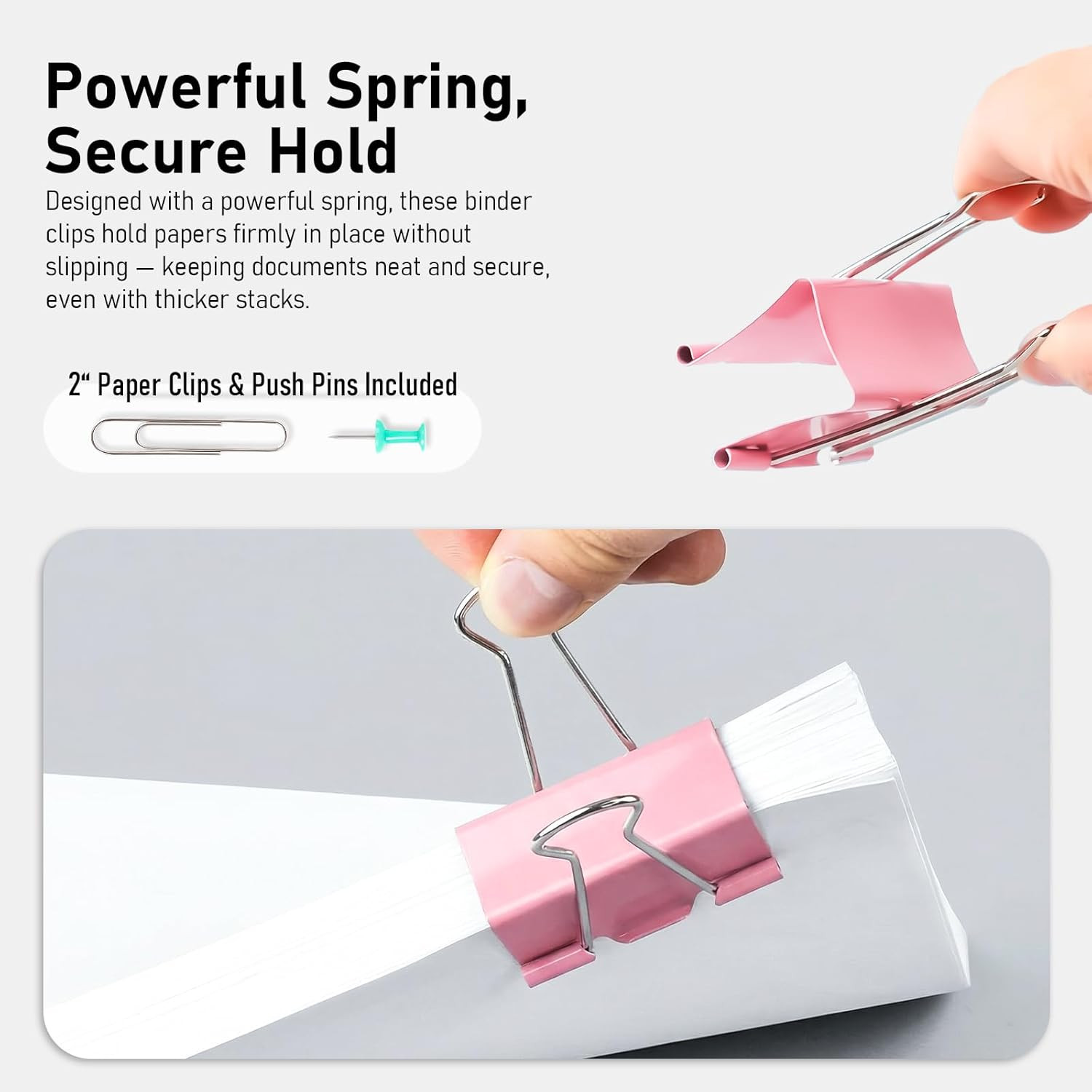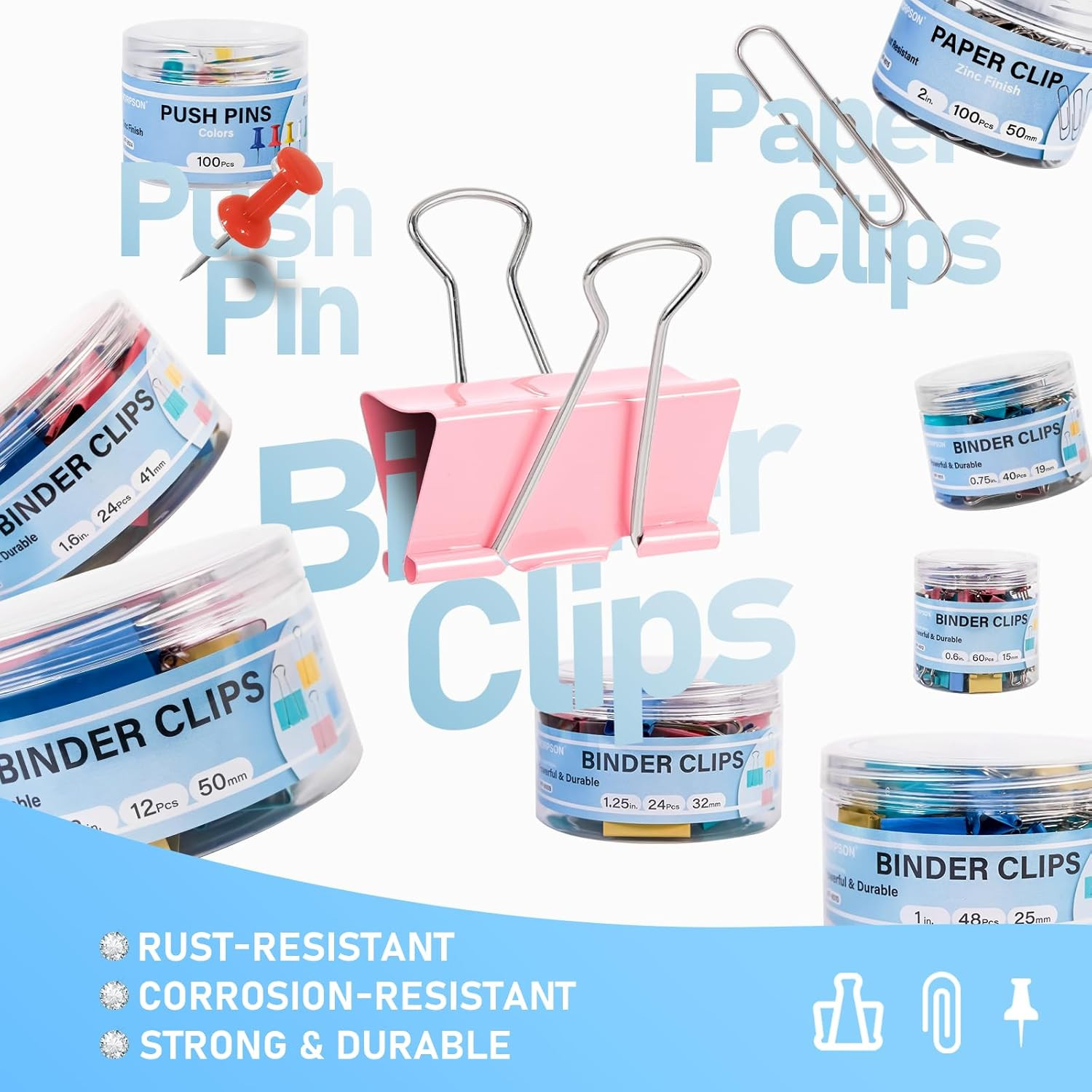 408 PCS Binder Clips Paper Clamps Assorted Sizes and Push Pins, Binding Paperwor