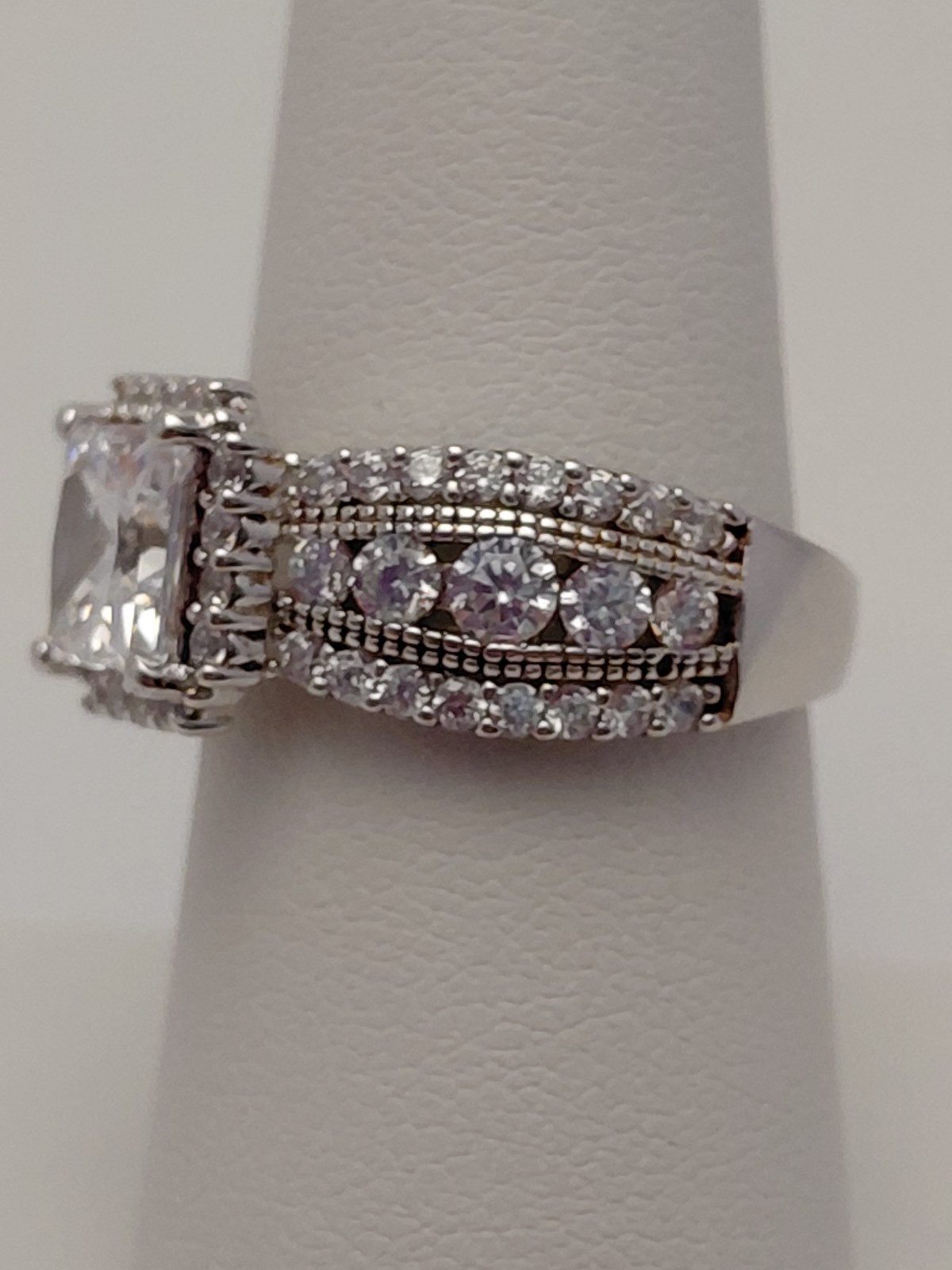 New 925 Sterling Silver Princess Cut Cz Three Rows Cz's on Band Size 7 Ring