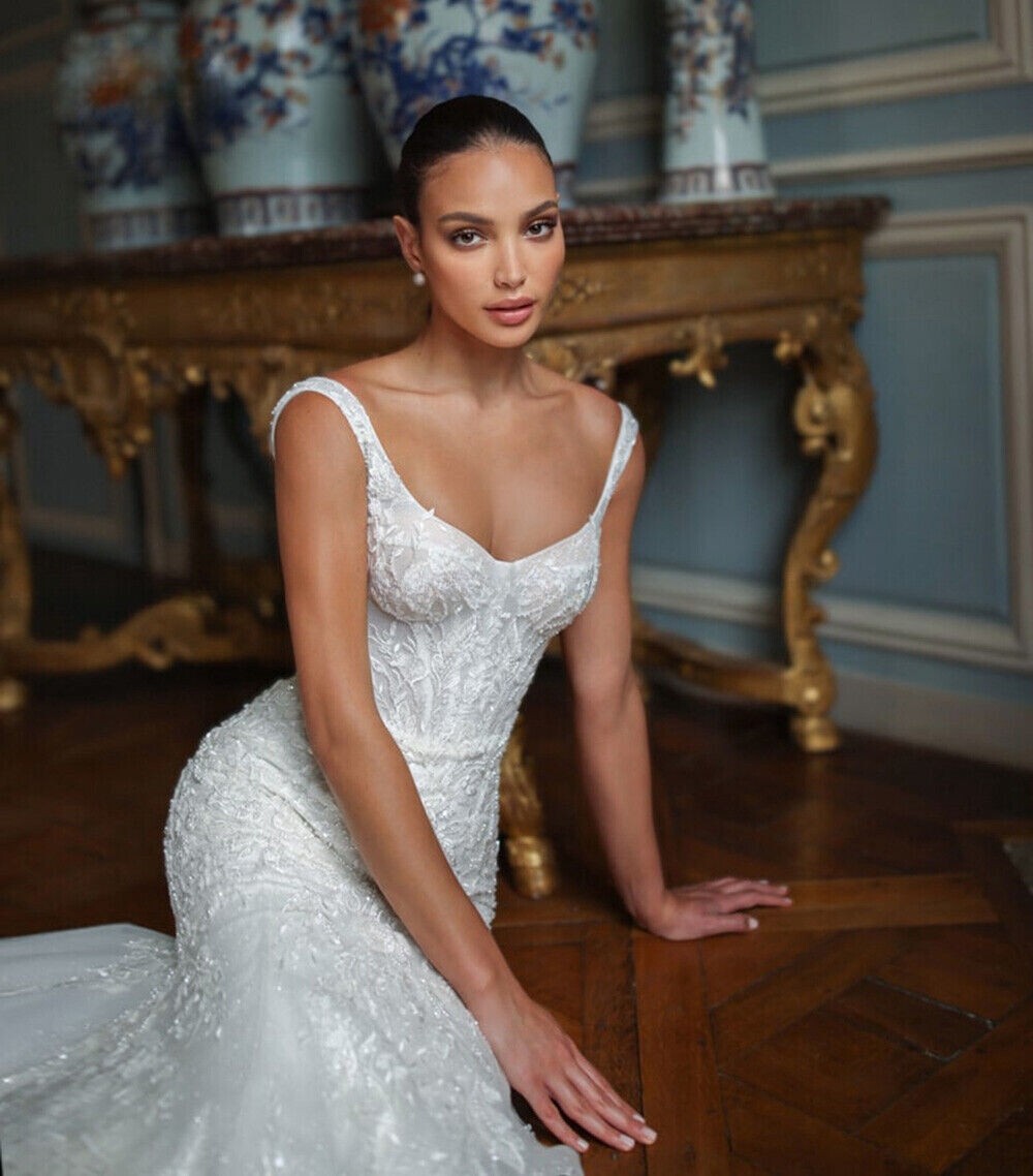 как выглядит Luxury Lace Mermaid Wedding Dresses With Detachable Train Appliques Backless New фото