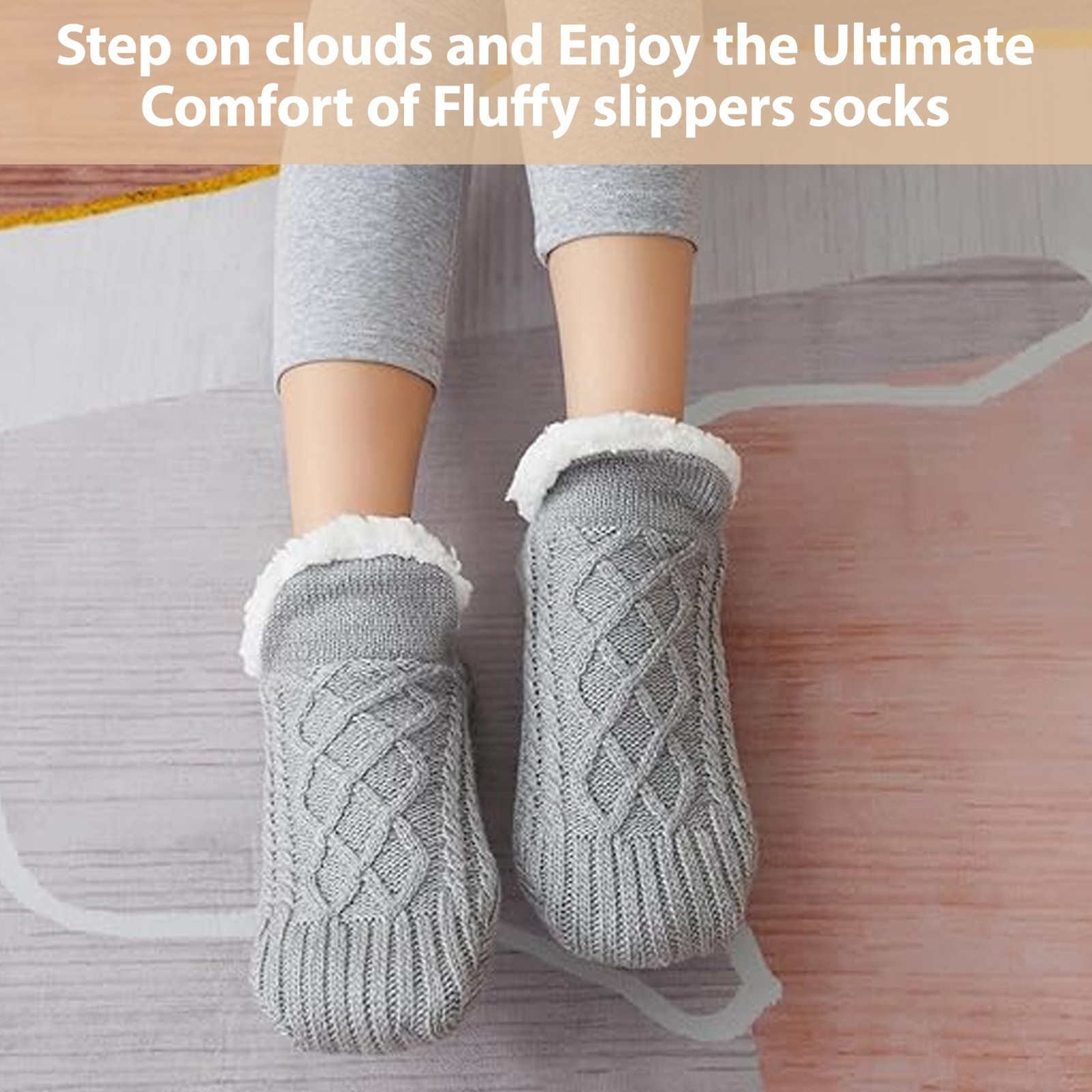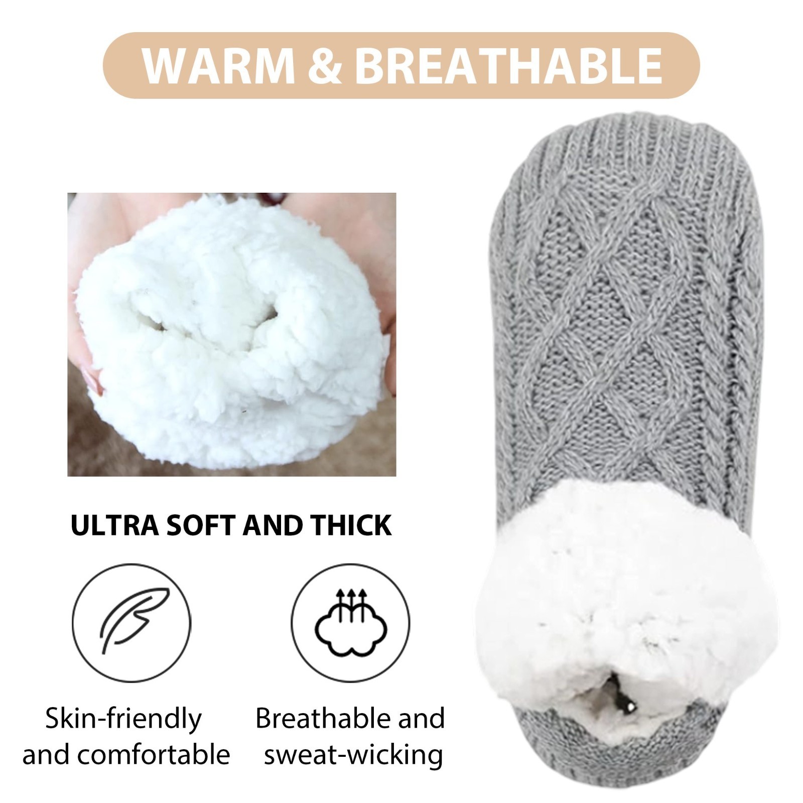 как выглядит Women Slippers Socks with Gripper Winter Non Slip Thick Fuzzy Warm Socks Indoor фото