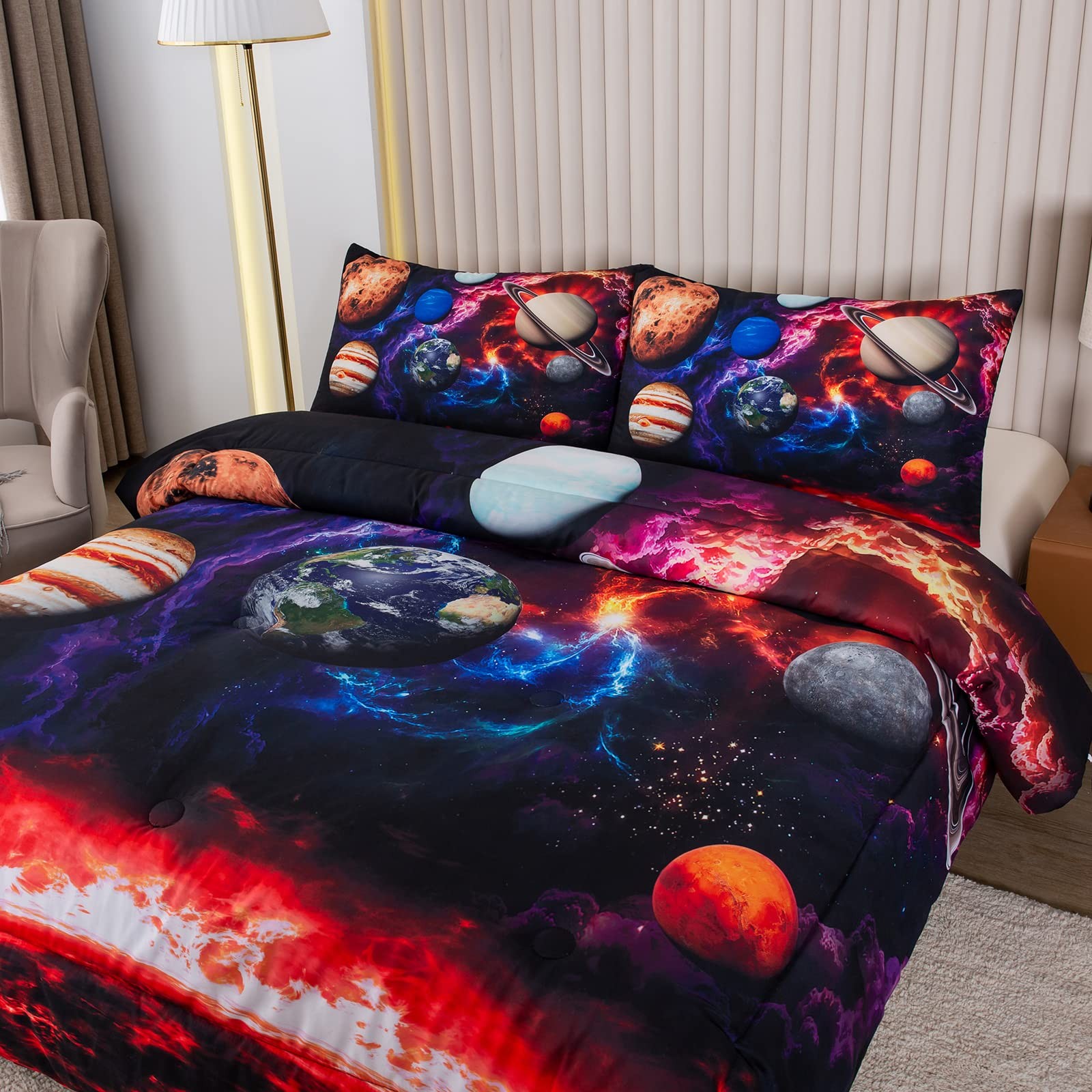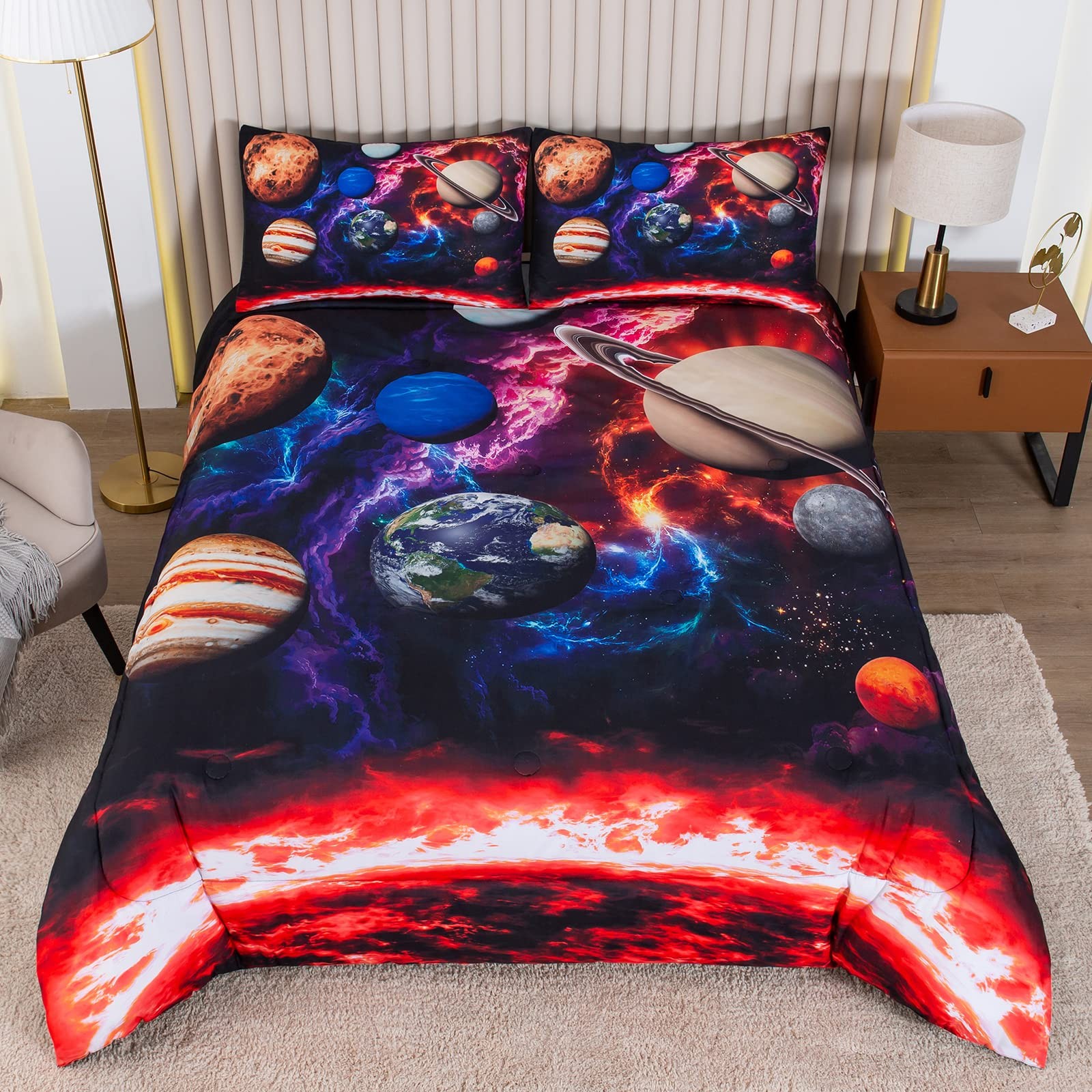 Twin Comforter Set,Colorful Space Comforter Set,Rainbow Colors Boys Girls Pla...