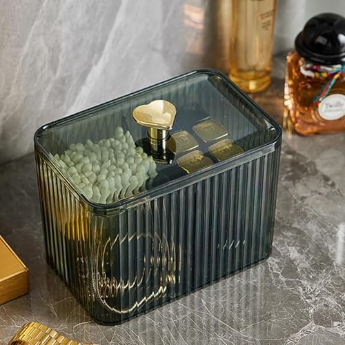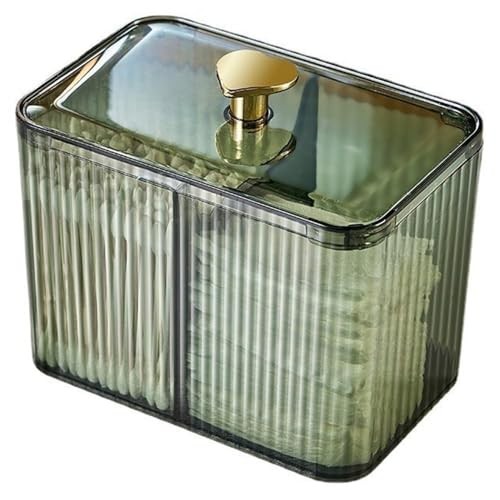 Qtips Holder Bathroom Container,3-Section Cotton Ball/Swabs 3 Grid-Green