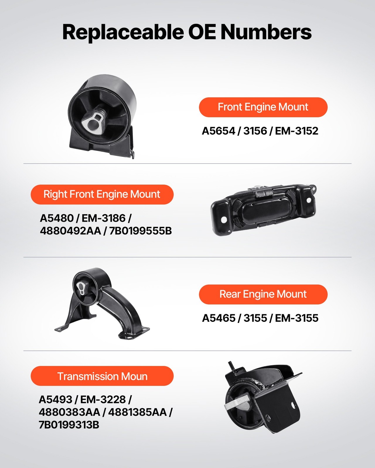 • Engine Motor Mount and Transmission Mount Kit Replacement,Set of 4,Compatible w/