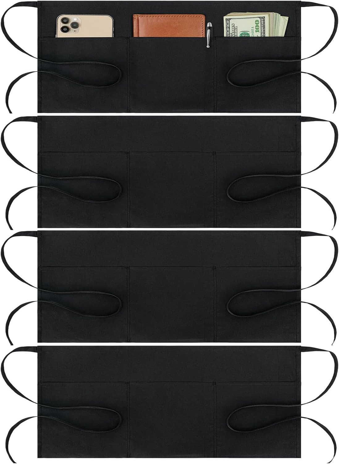 как выглядит 4 Pack Waitress Apron with 3 Pockets-Black Server Aprons-Waiter Short Half Waist фото