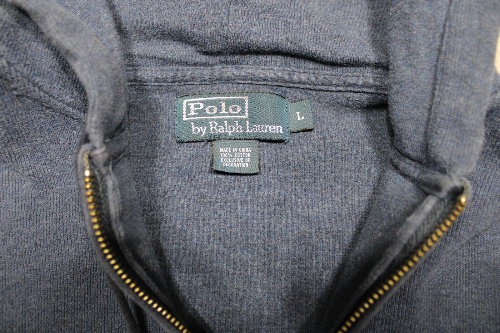 Polo Ralph Lauren Hoodie Mens Large Blue Full Zip Fleece Sweatshirt Pony Logo