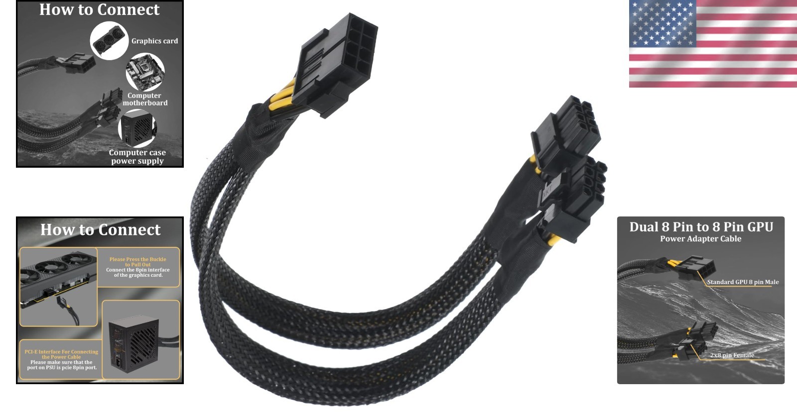 Durable 8-Pin PCIe Power Cable with 6 2 Connector for High-Performance GPUs