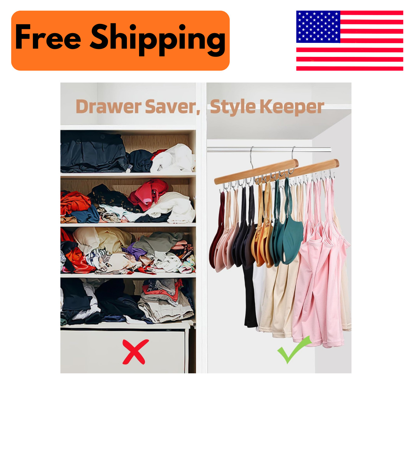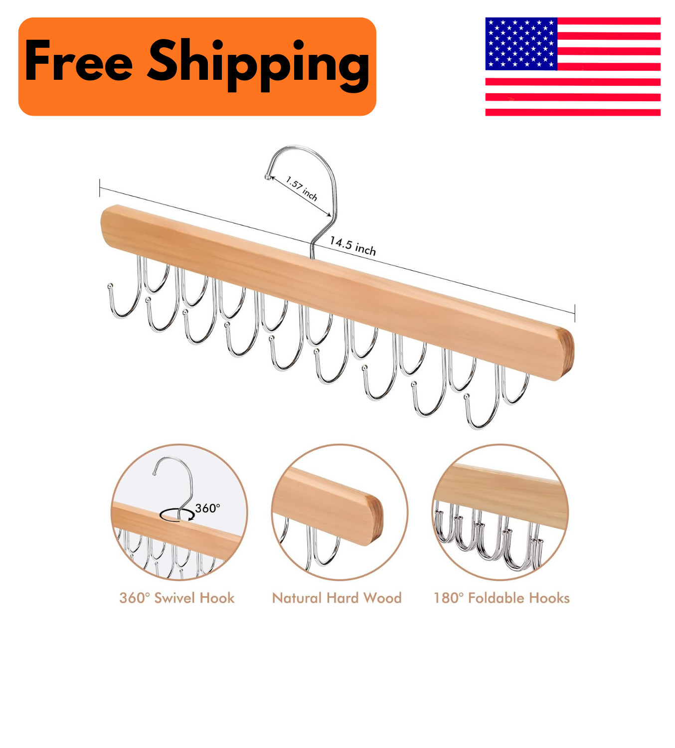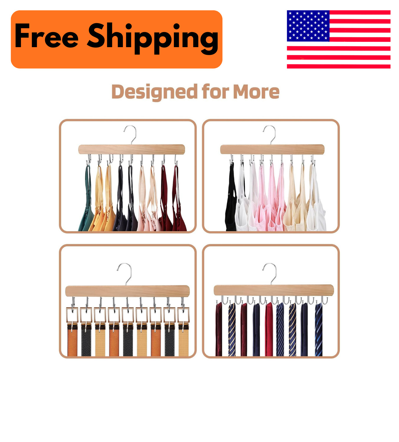 2 Pack Wooden Bra Hangers Closet Organizer 36 Hook Rotating Tank Top Scarf Hange