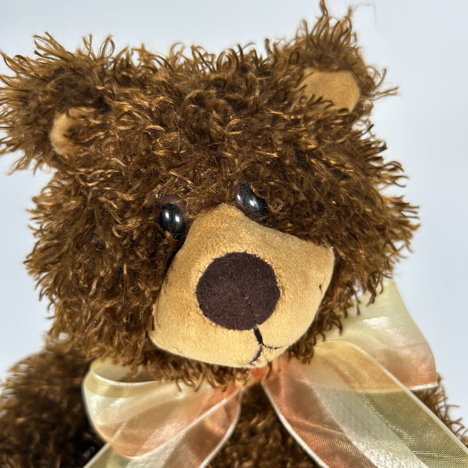 First Main Brown Teddy Bear Plush 16 Curly Fur Stuffed Animal Ribbon Bow
