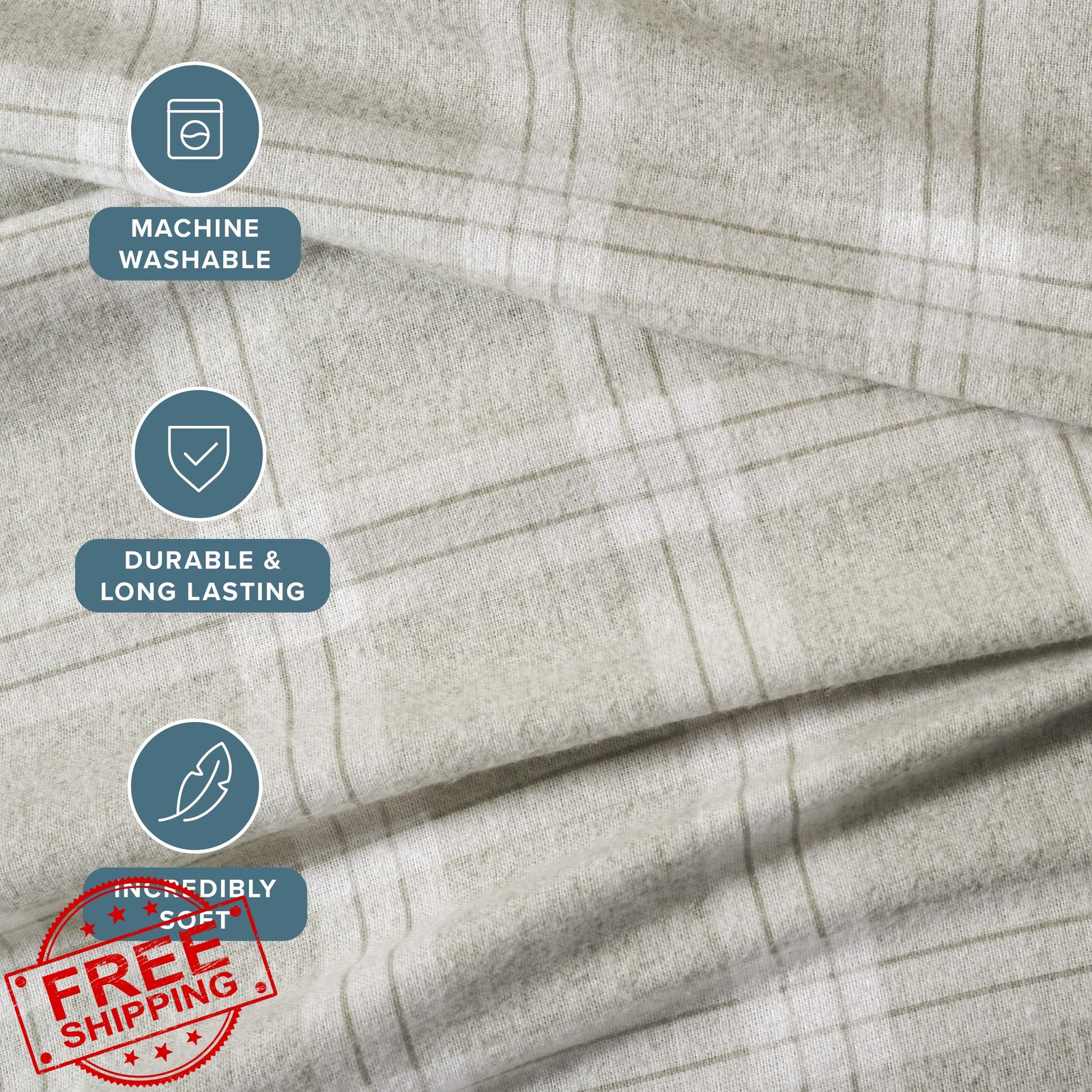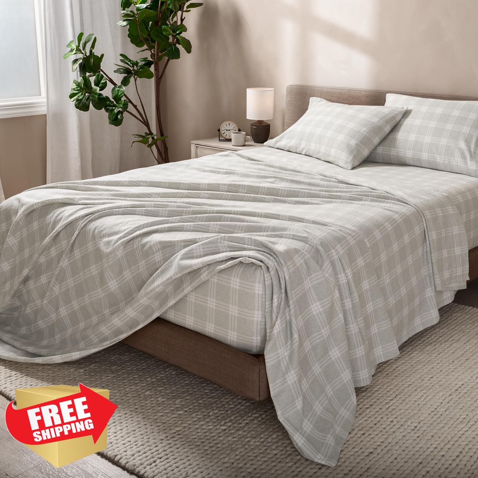 Bare Home Full Flannel Sheet Set Checkered Plaid Light Grey 100 Cotton