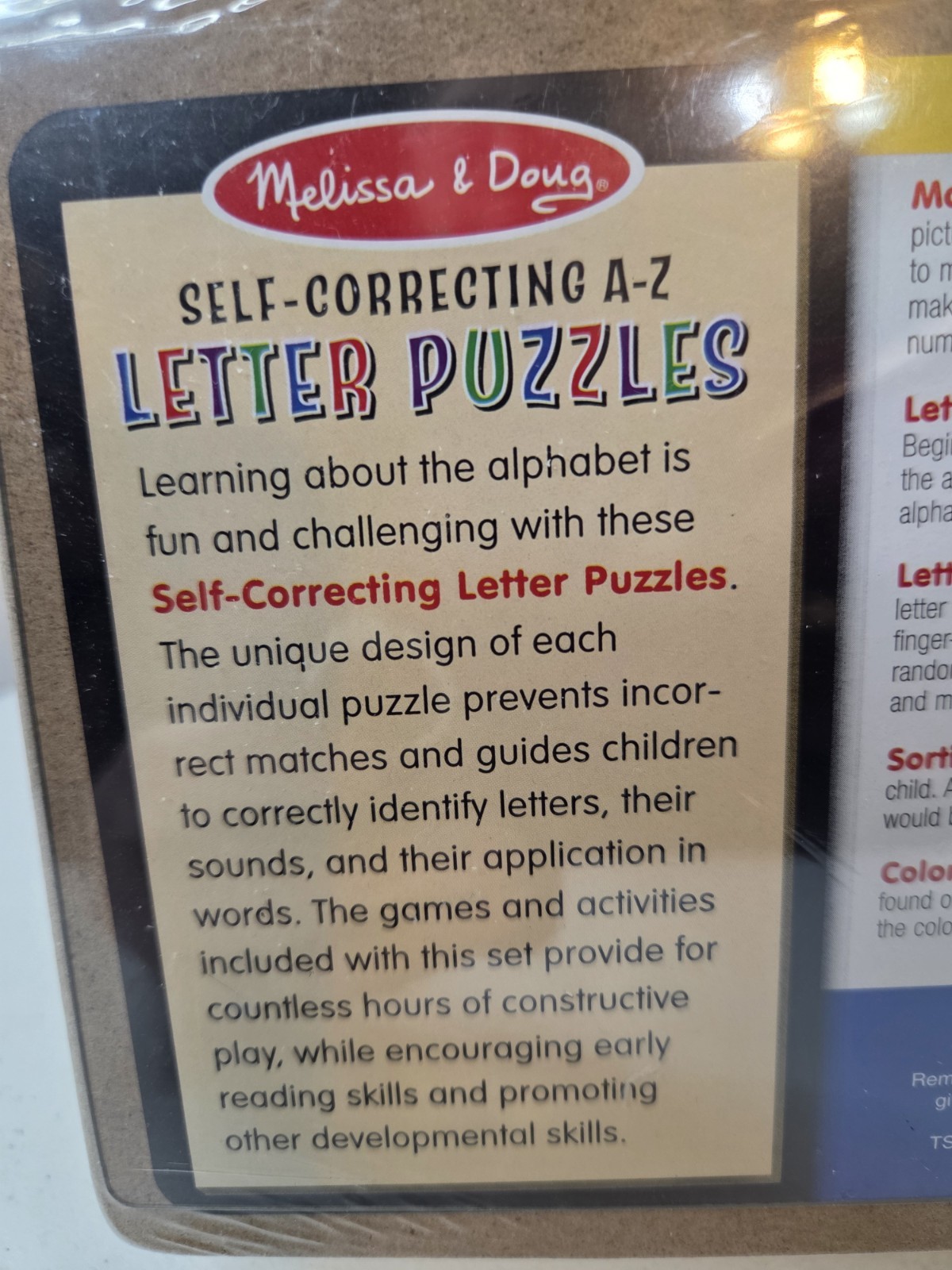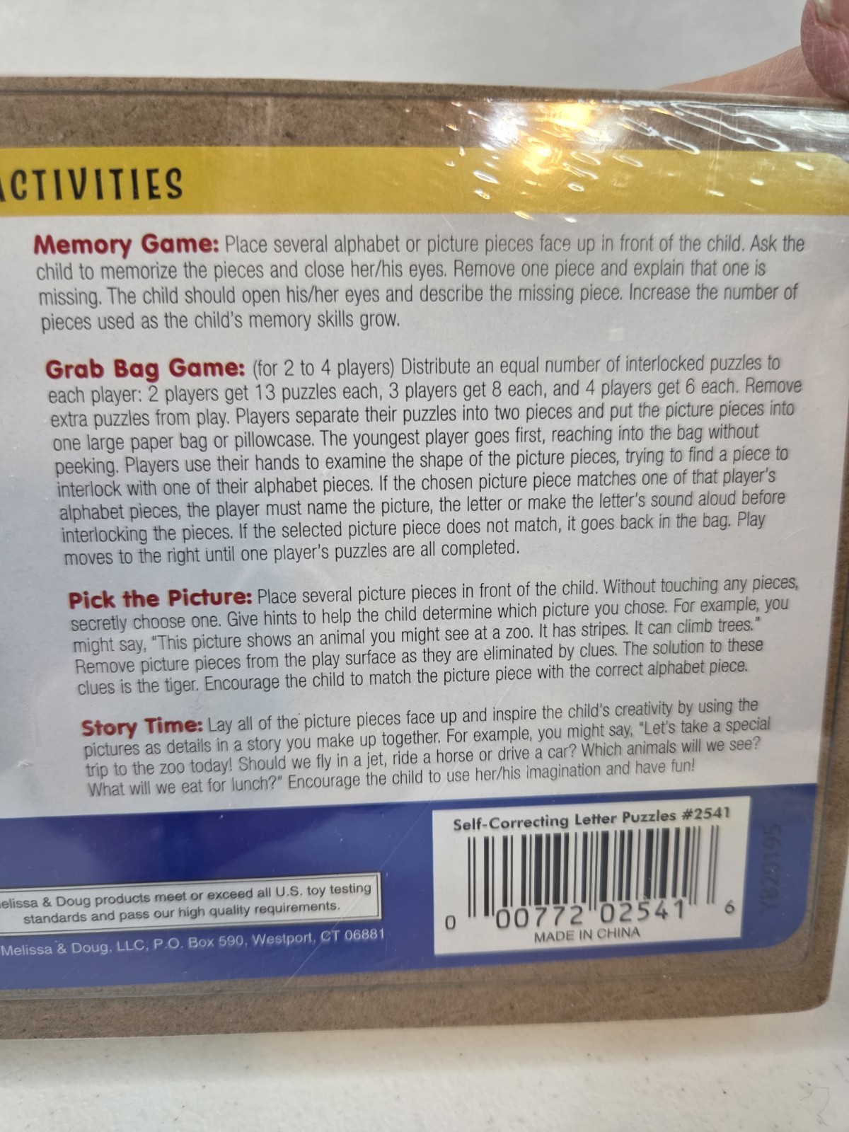 Melissa Doug A-Z Self-Correcting Alphabet Wooden Puzzle 52 Pieces Ages 4 Up