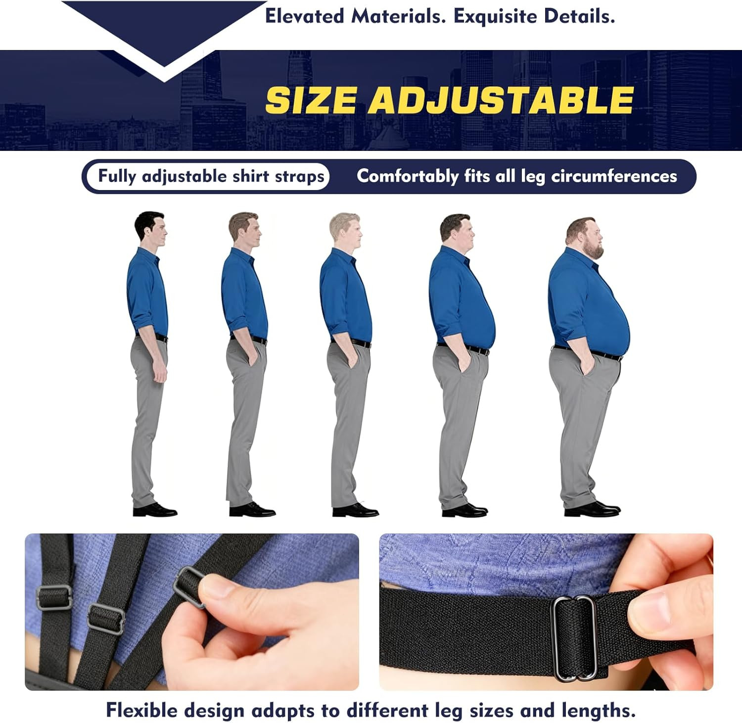 Shirt Stays for Men, Upgraded Adjustable Soft and Smooth Elastic Garter with ...