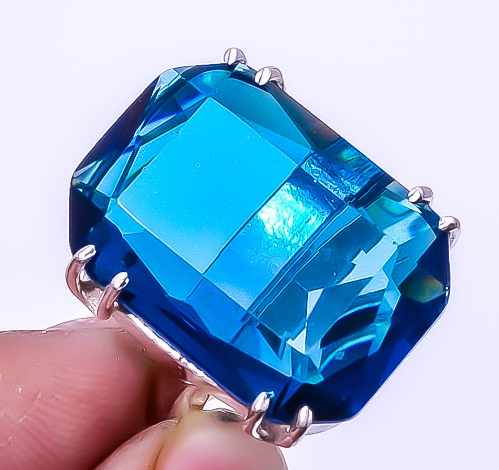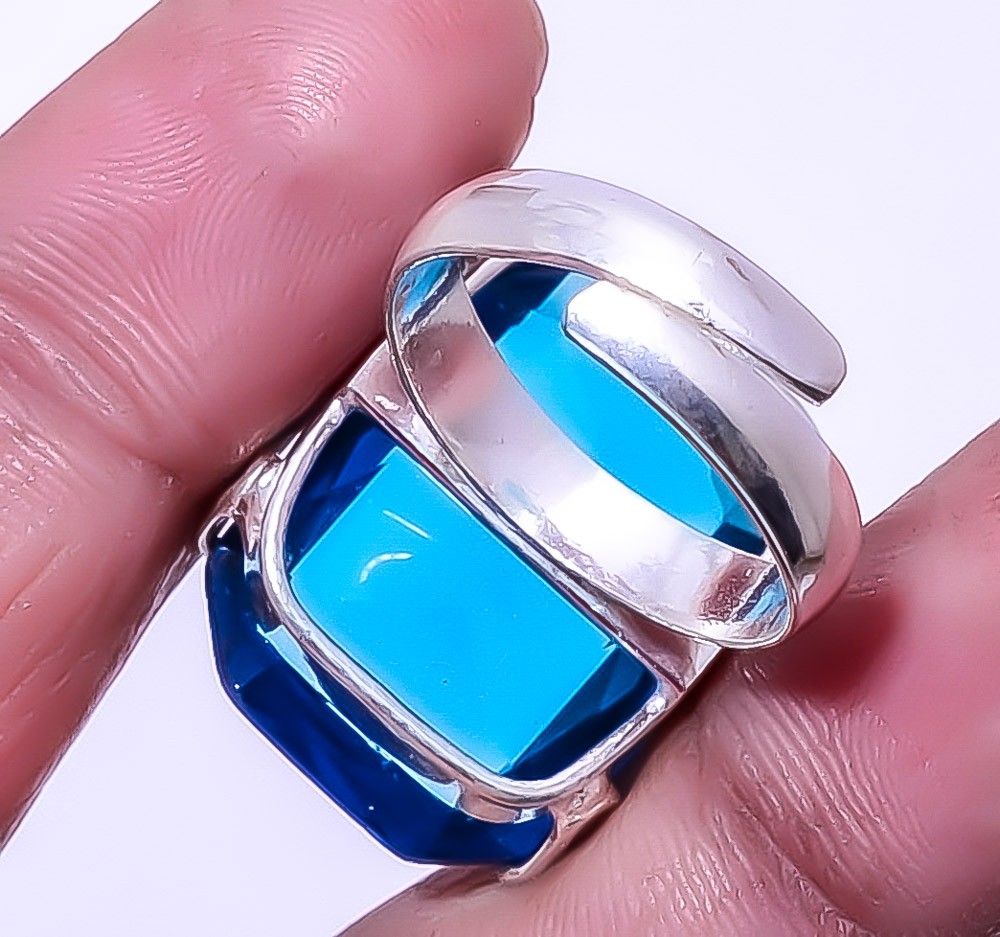 как выглядит London Blue Topaz 925 Sterling Silver Solitaire Handmade Ring Adjst R676 фото