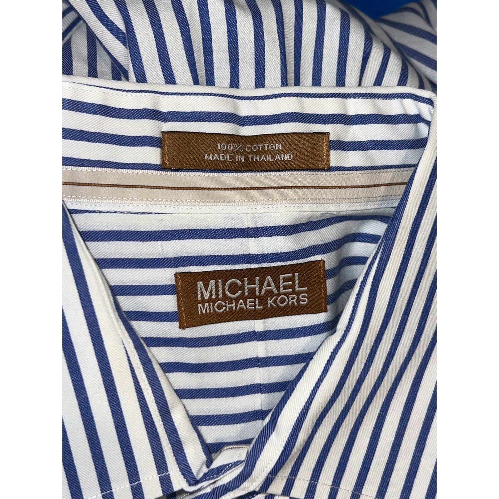 как выглядит Michael Kors Mens Dress Shirt Blue White Striped Cotton Long Sleeve XL 17 32/33 фото