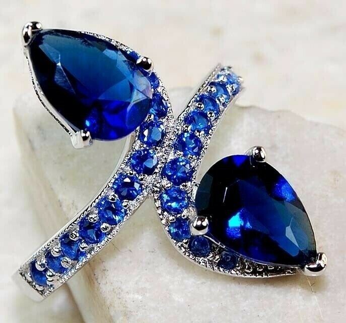 как выглядит 4CT Treated Blue Sapphire 925 Solid Sterling Silver Ring Jewelry Sz 7 UB4-3 фото