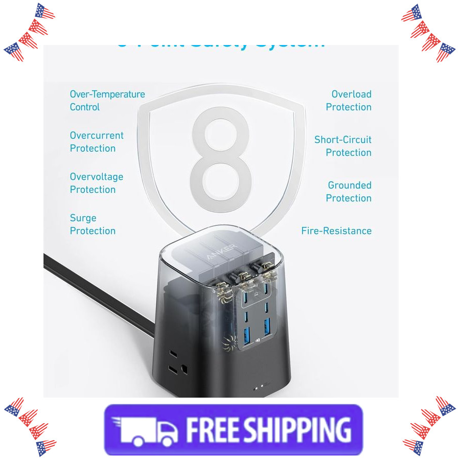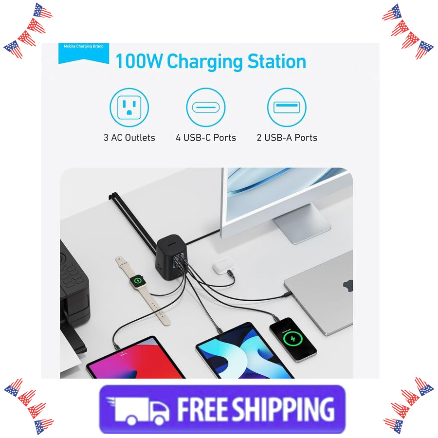 Anker 9-in-1 Charging Station 100W USB C Power Strip 300J Surge Protector, 5ft