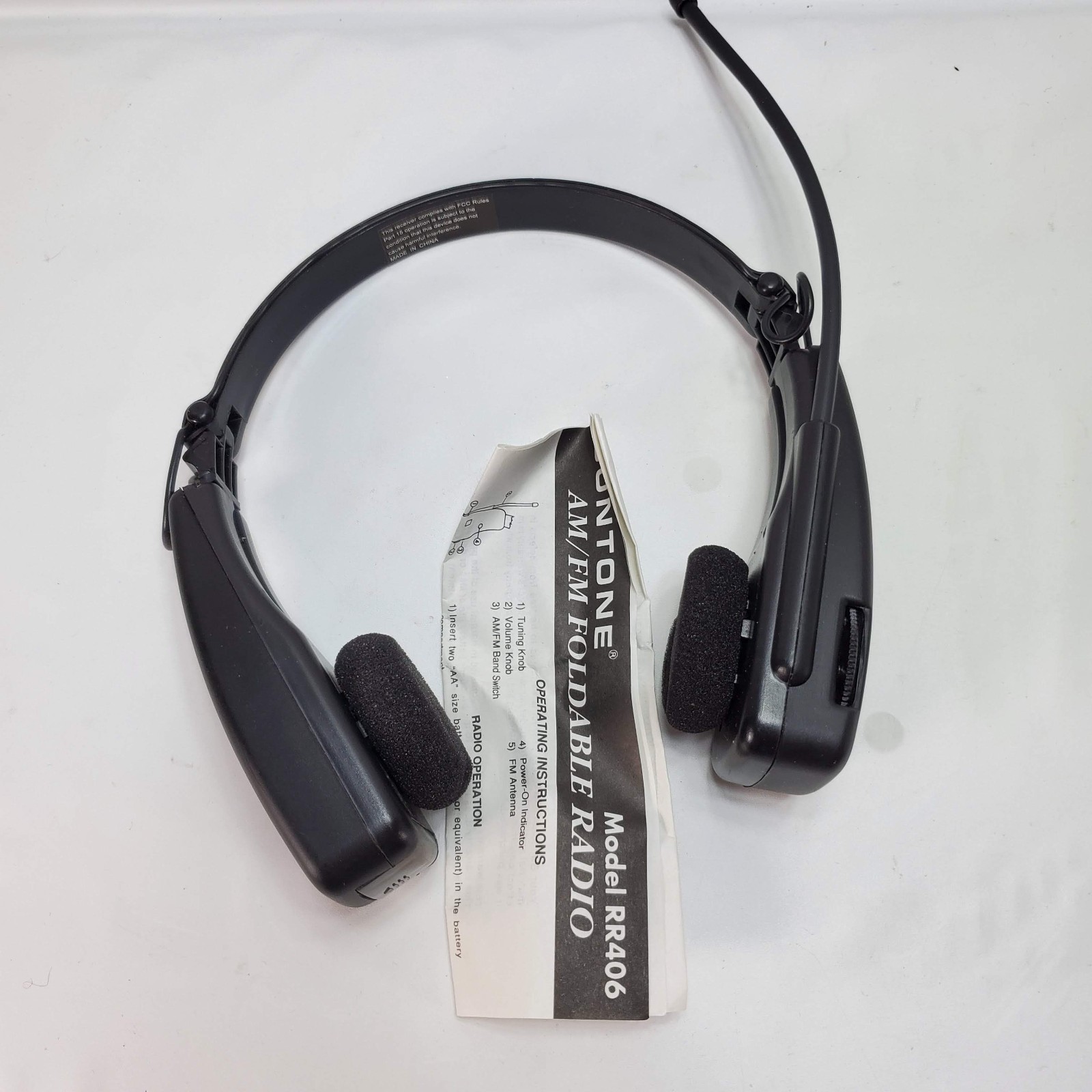Suntone RR406 AM/FM Radio Folding Headphones, Manual, Black, Built In Antenna
