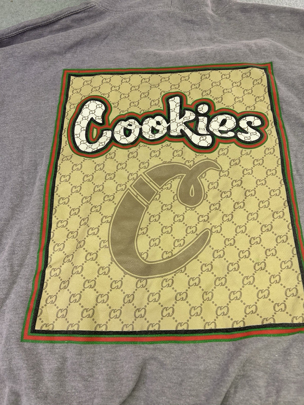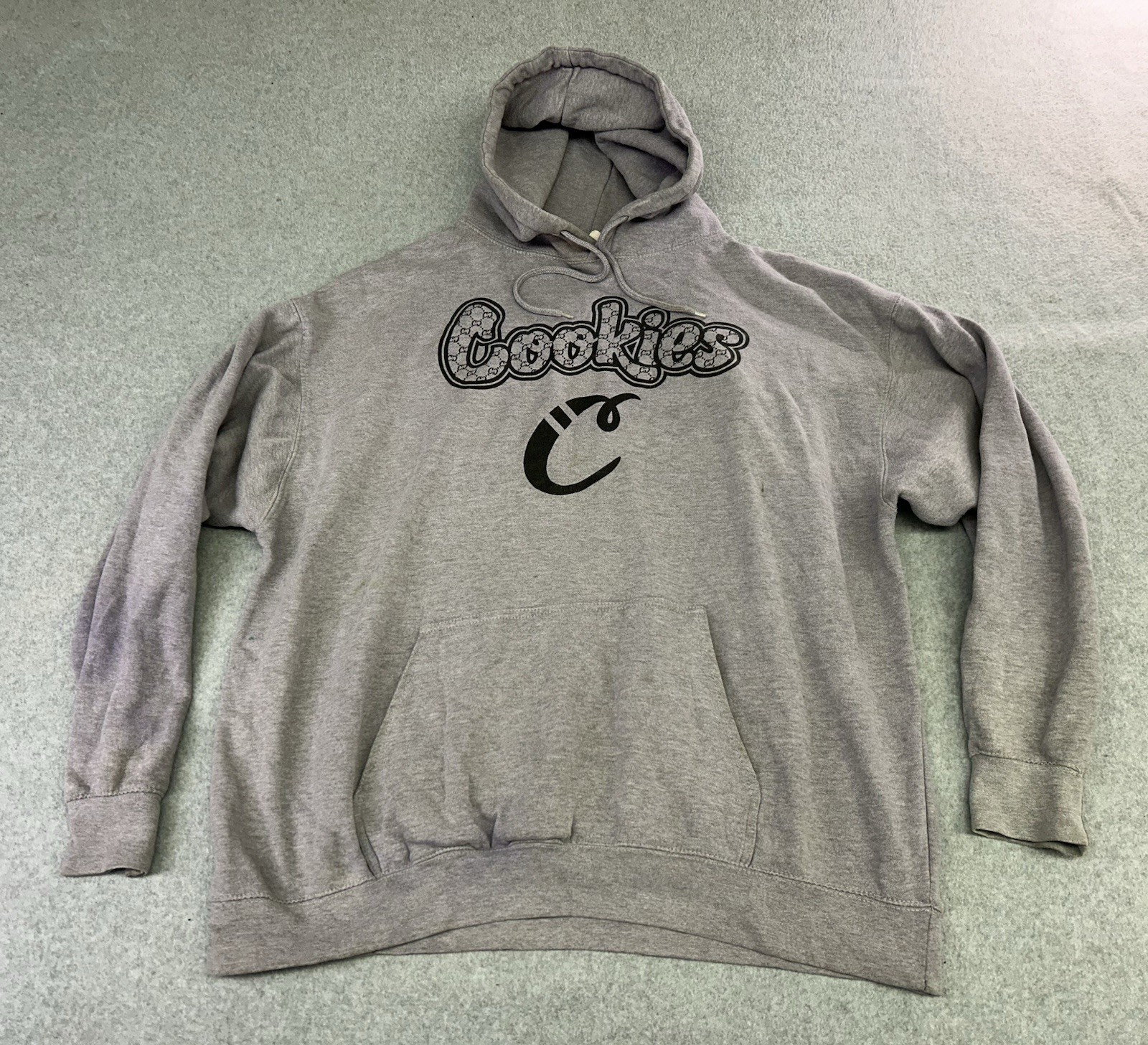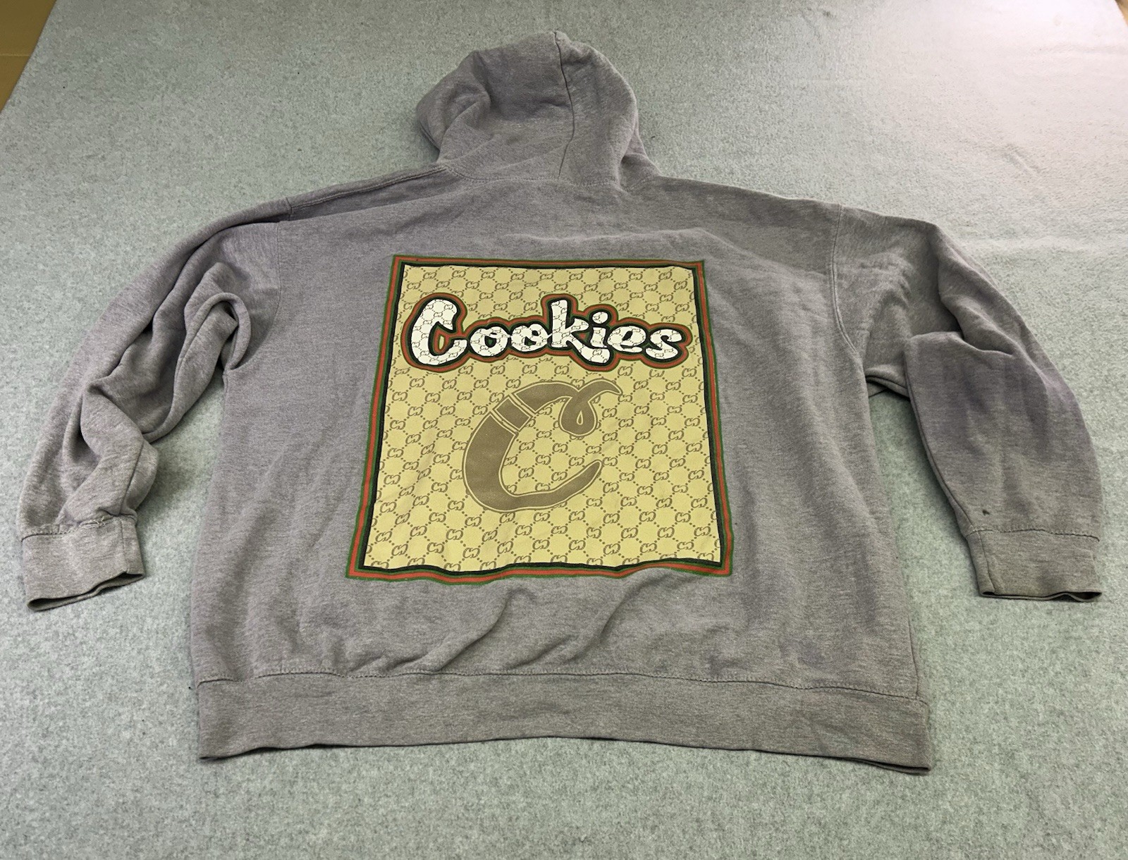 Cookies Logo Hoodie Sweatshirt Gray Double Sided Big Graphic, Streetwear SZ 2XL