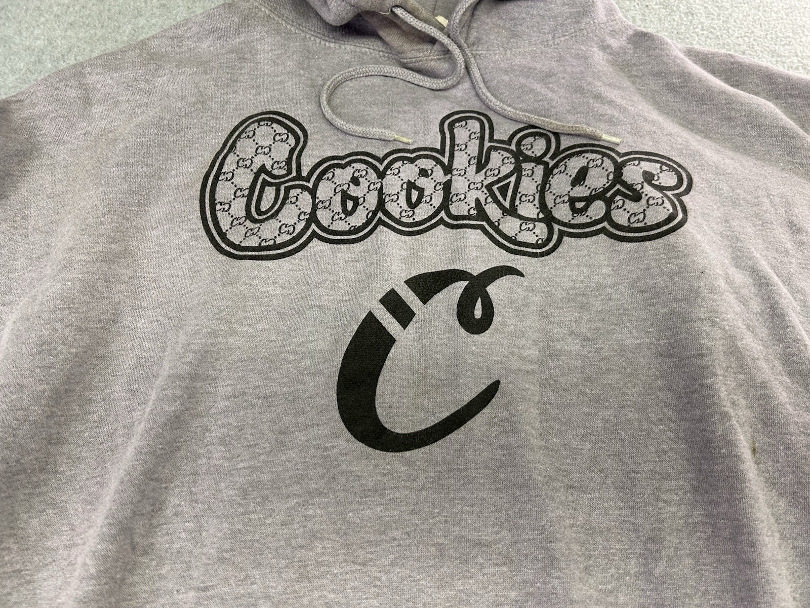 как выглядит Cookies Logo Hoodie Sweatshirt Gray Double Sided Big Graphic, Streetwear SZ 2XL фото
