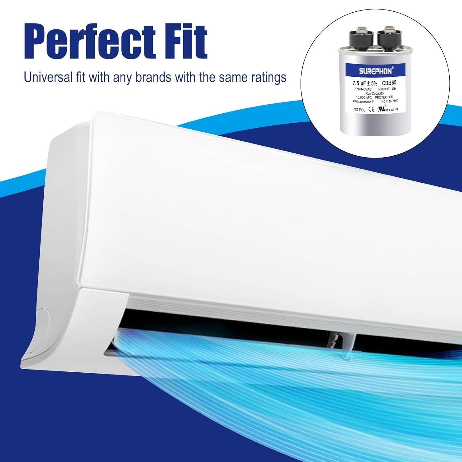 7.5 Mfd Capacitor 370V/440V Oval Run Start Capacitor for AC Motor Run or Fan ...