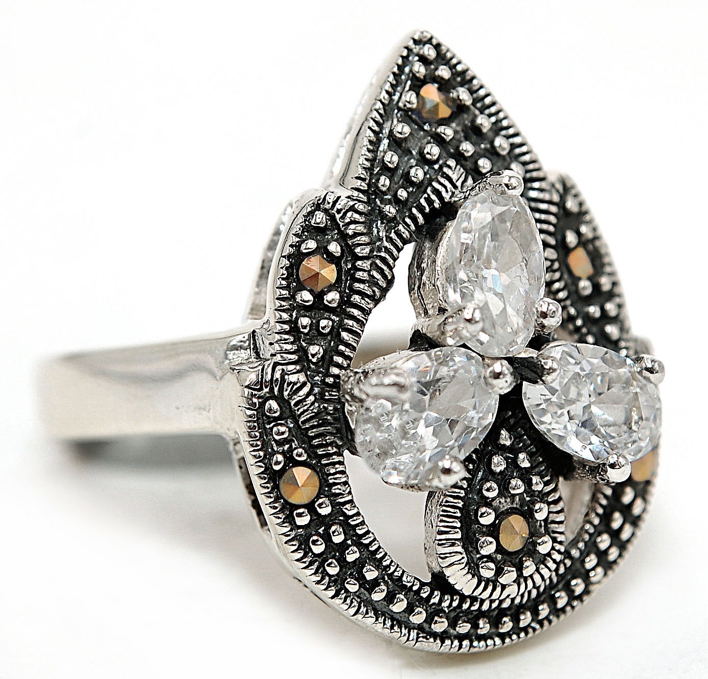 как выглядит 1CT White Topaz Swiss Marcasite 925 Solid Sterling Silver Ring Sz 6,7,8,9 ZB8 фото