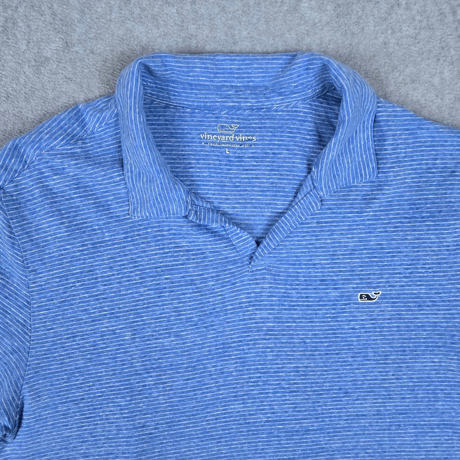 как выглядит Vineyard Vines Shirt Mens Size Large Linen Blend Polo Blue Stripe Short Sleeve фото