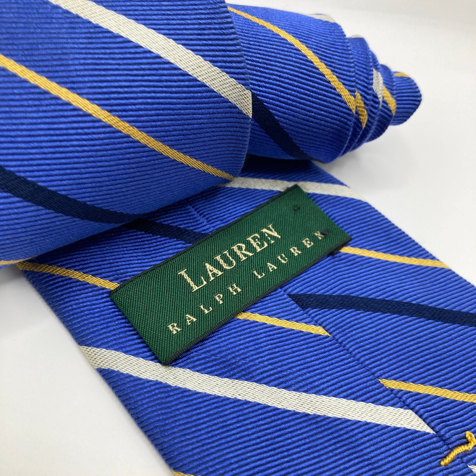 Lauren Ralph Lauren 100 Silk Blue Striped Repp Tie Regimental Preppy Gift