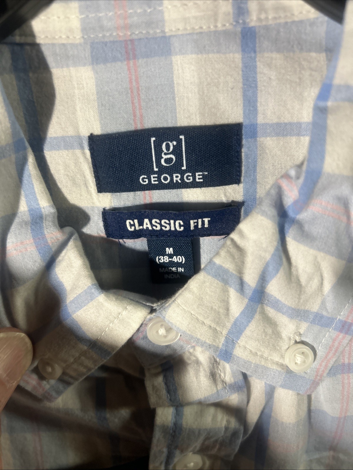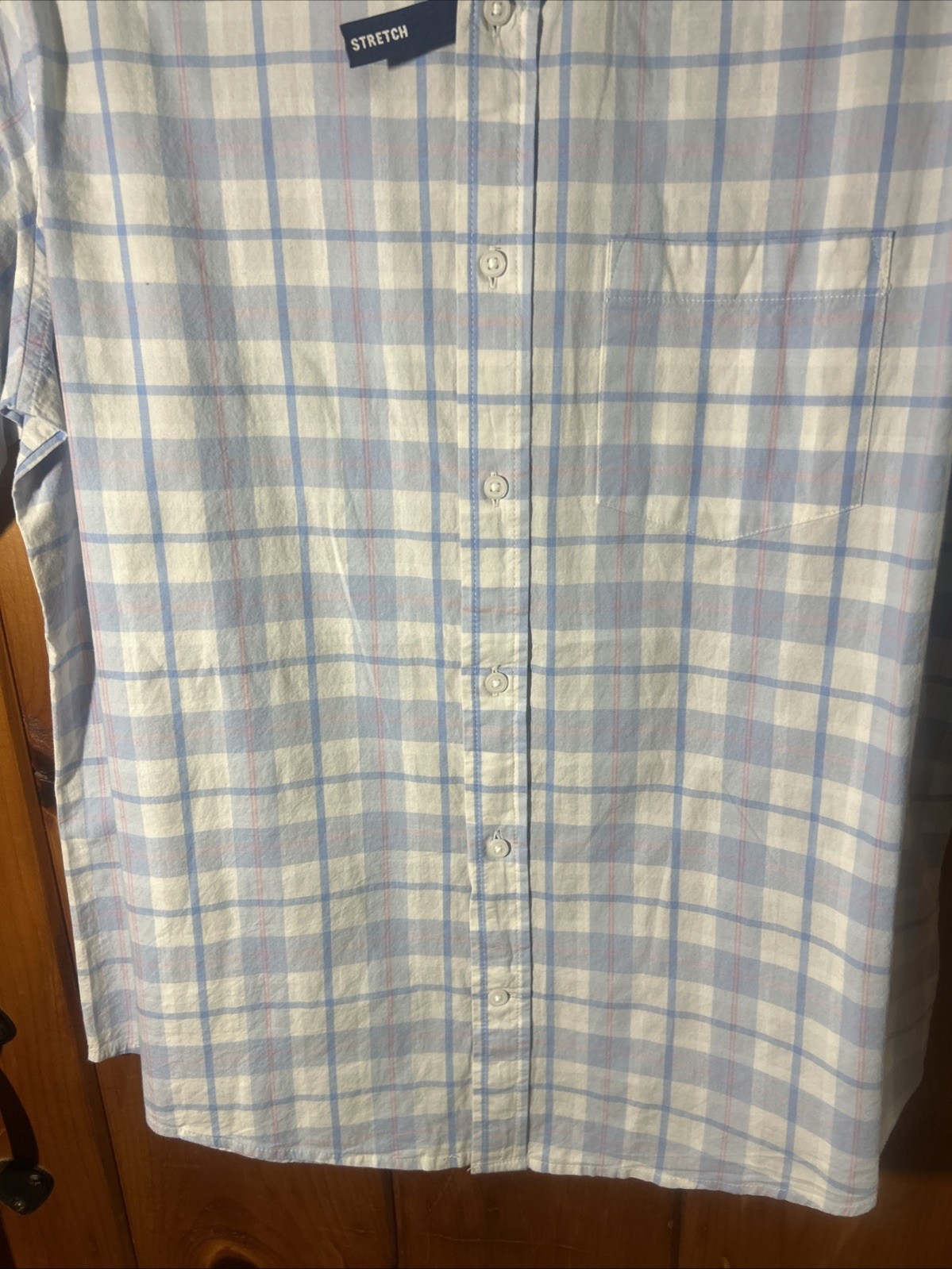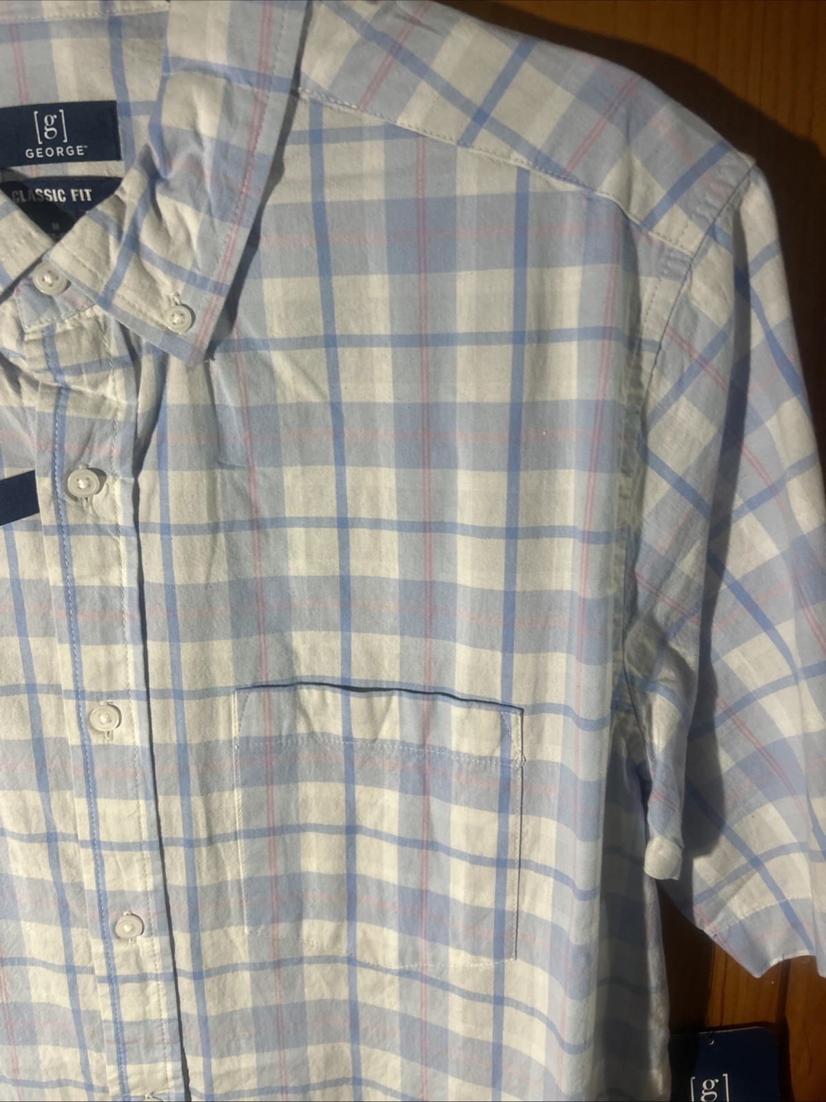 как выглядит NWT George Men s 38-40 Blue Pink Plaid Classic Fit Short Sleeve Poplin Shirt фото