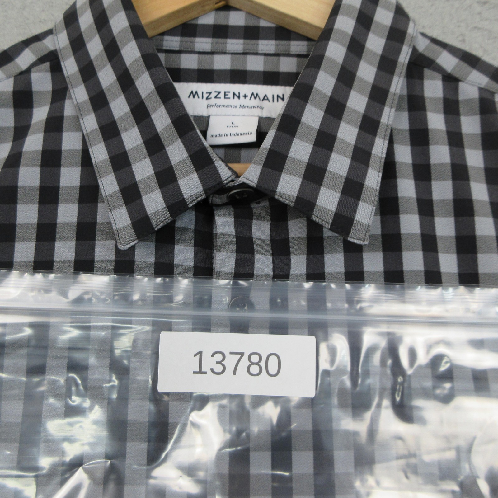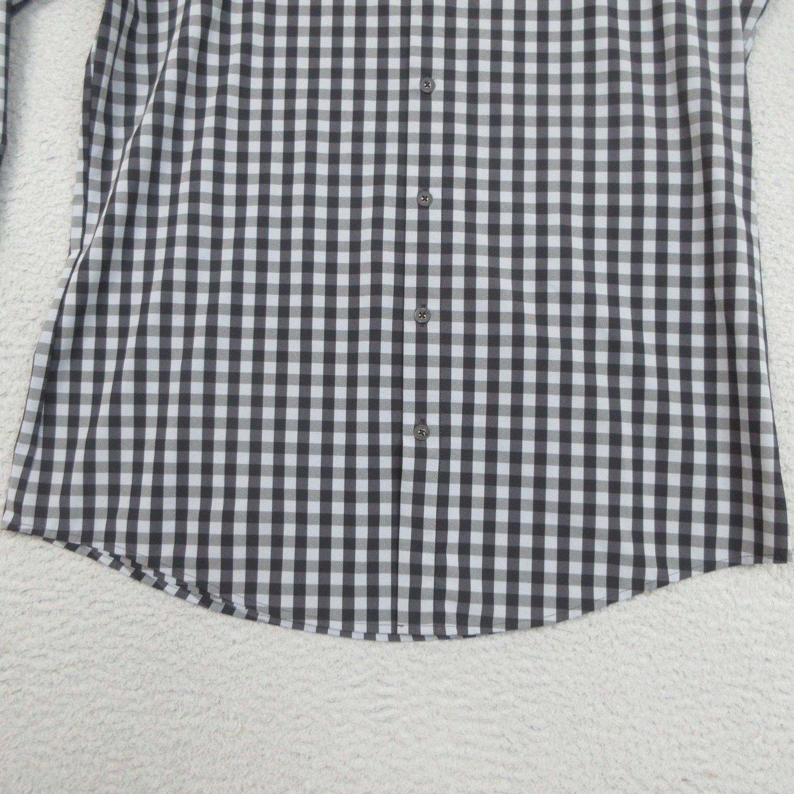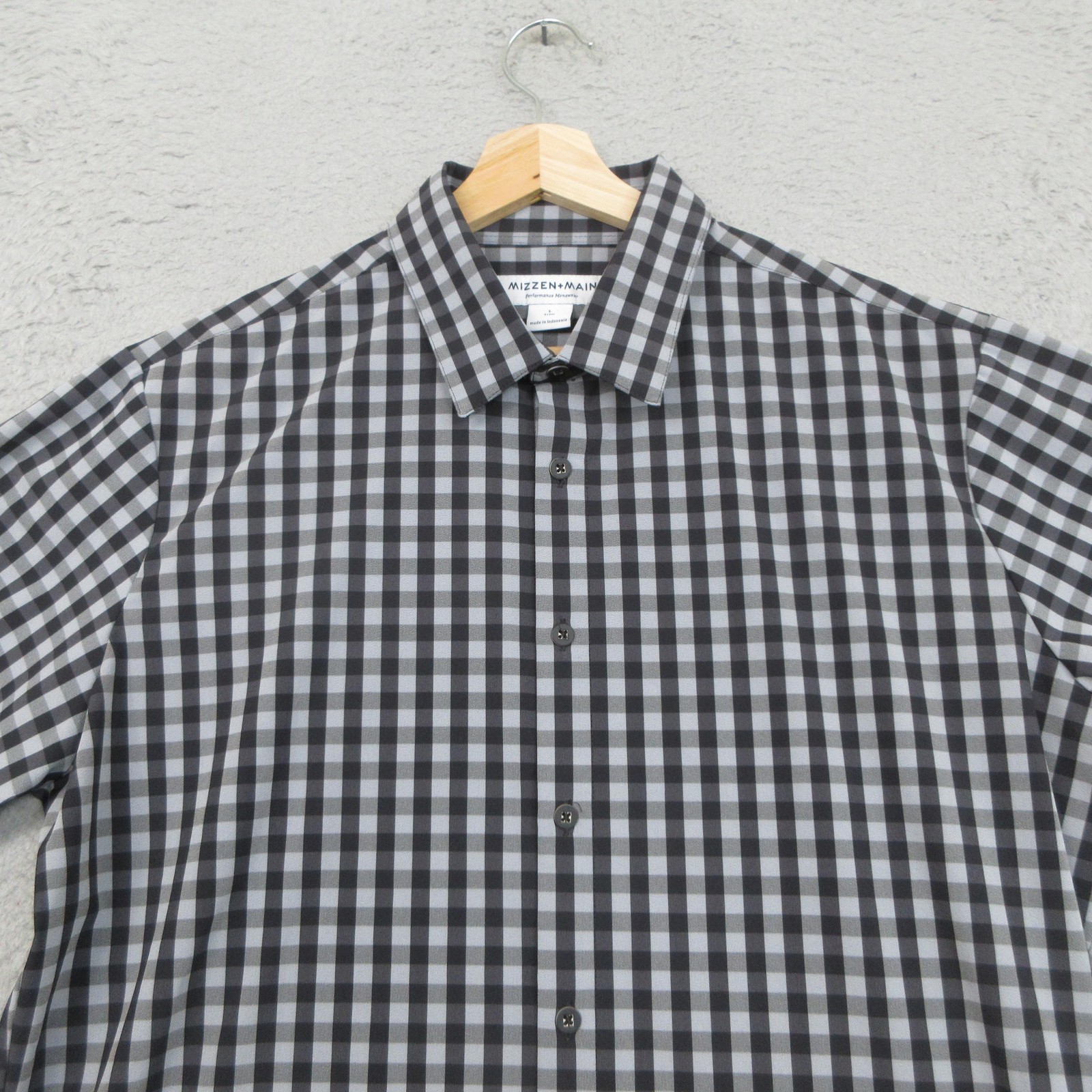 как выглядит Mizzen Main Dress Shirt Mens Large Gray Gingham Trim Fit Performance Stretch фото
