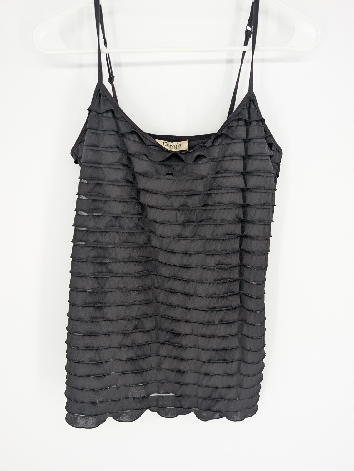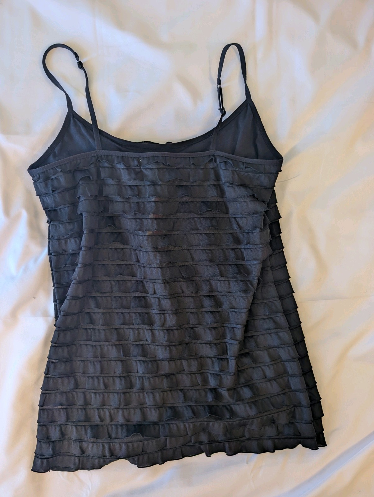 Y2K Whimsigoth Black Ruffled Sheer Cami L Gothic Coquette Romantic Grunge NWT