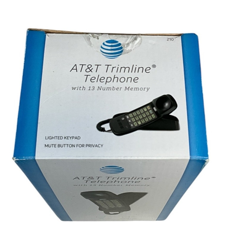• AT T 210 Trimline Black Telephone Corded Lighted Keypad NWT 13 Number Memory