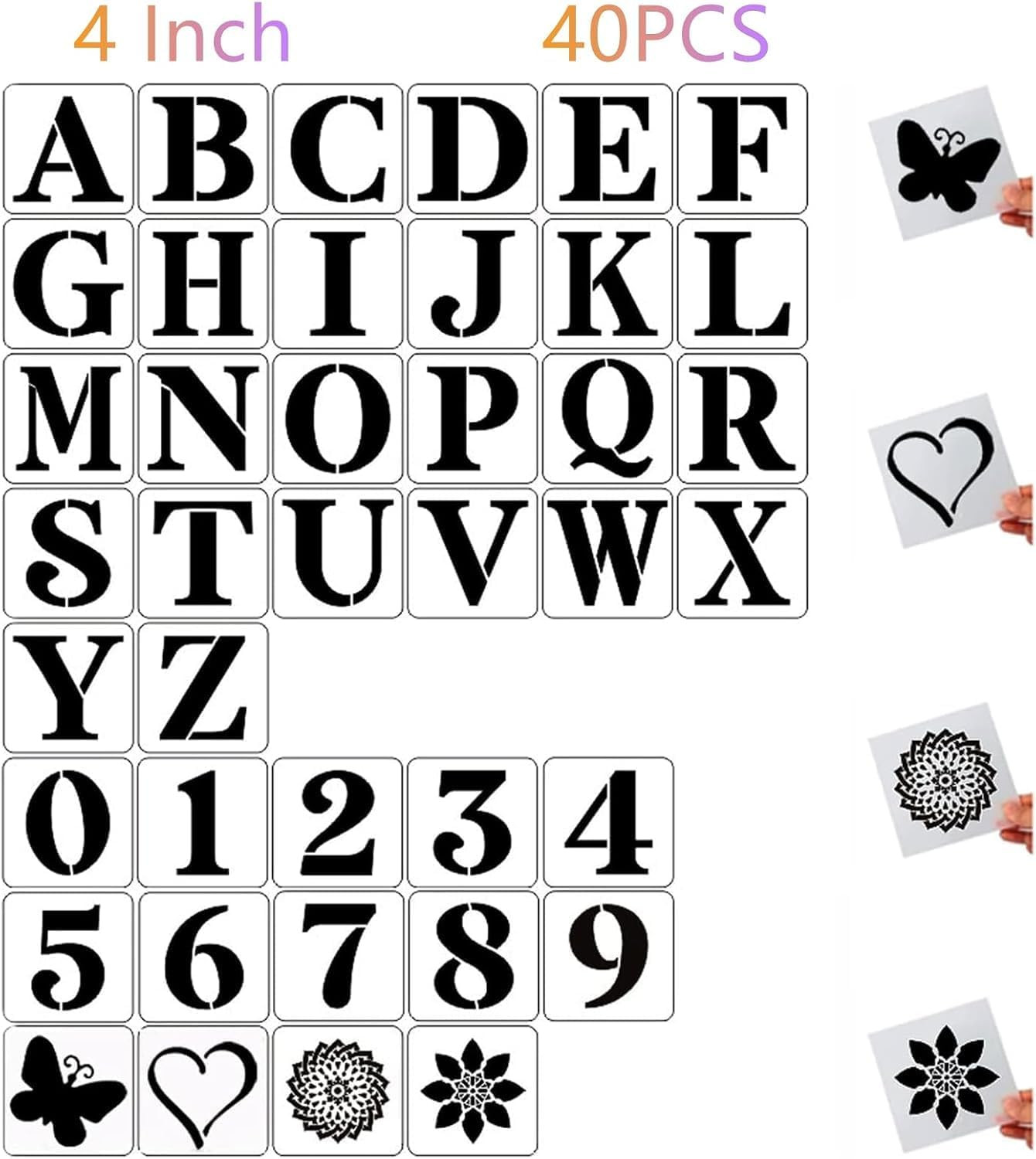 4 Inch Letter Stencils and Numbers,40 Pcs Reusable Plastic Large 4Inch