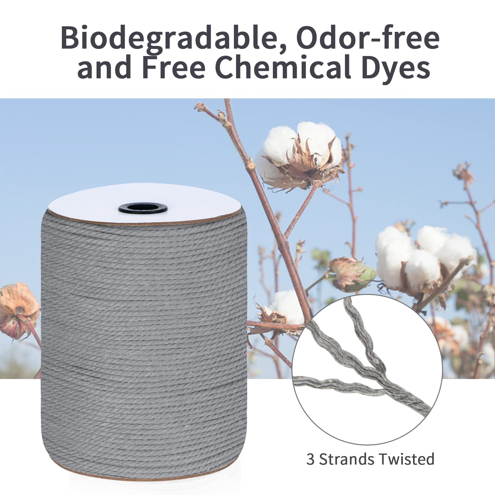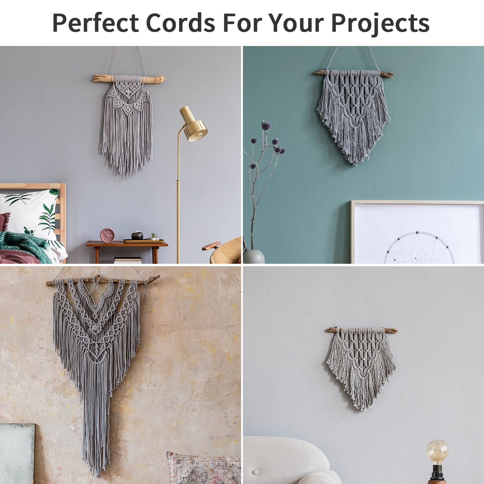 Macrame Cord 5mm x 165Yards, Natural Cotton Rope x 165yards, Gray