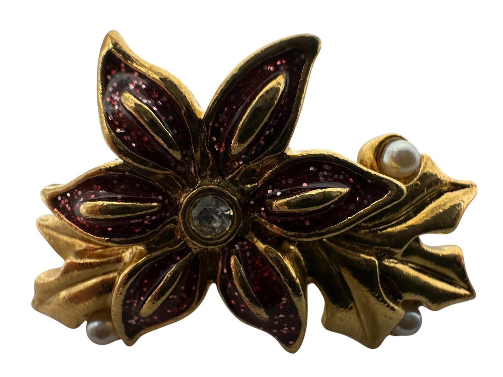 как выглядит Vintage Signed AVON Poinsettia Christmas Pierced Earrings Rhinestone фото