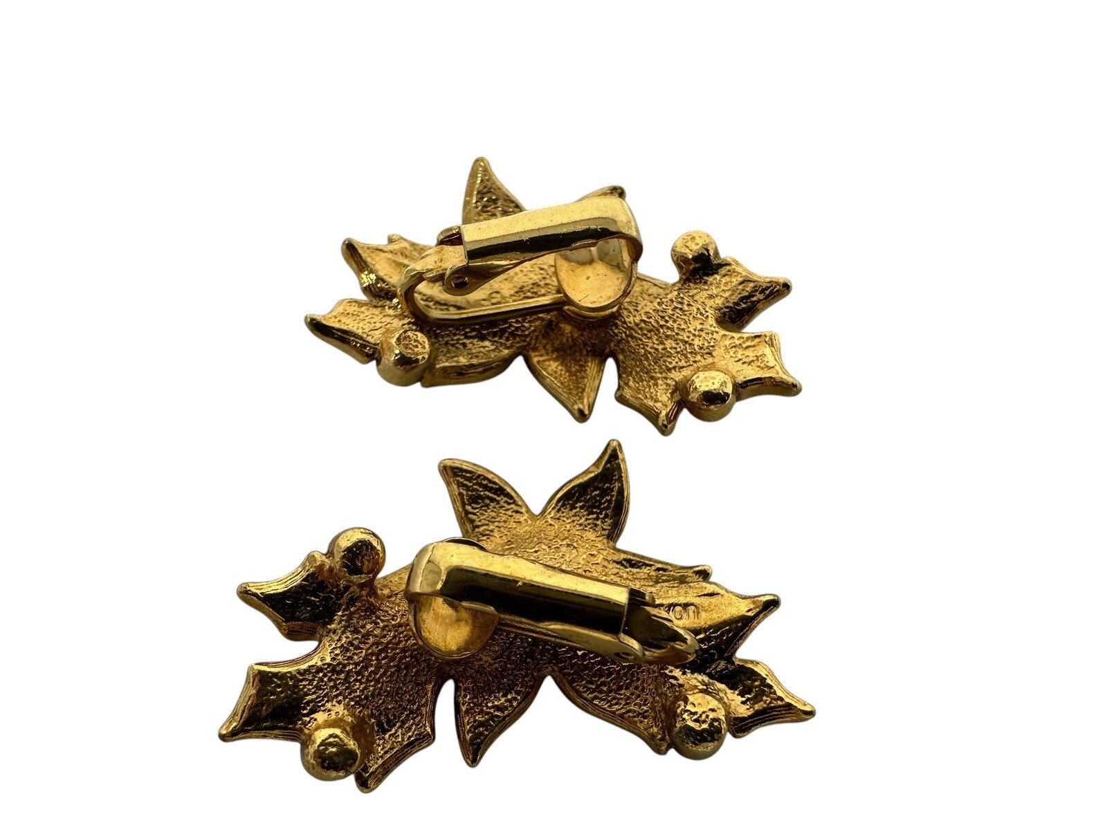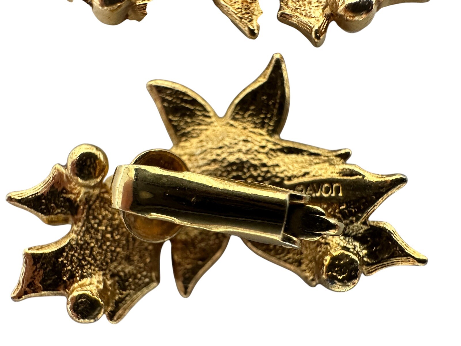 Vintage Signed AVON Poinsettia Christmas Pierced Earrings Rhinestone