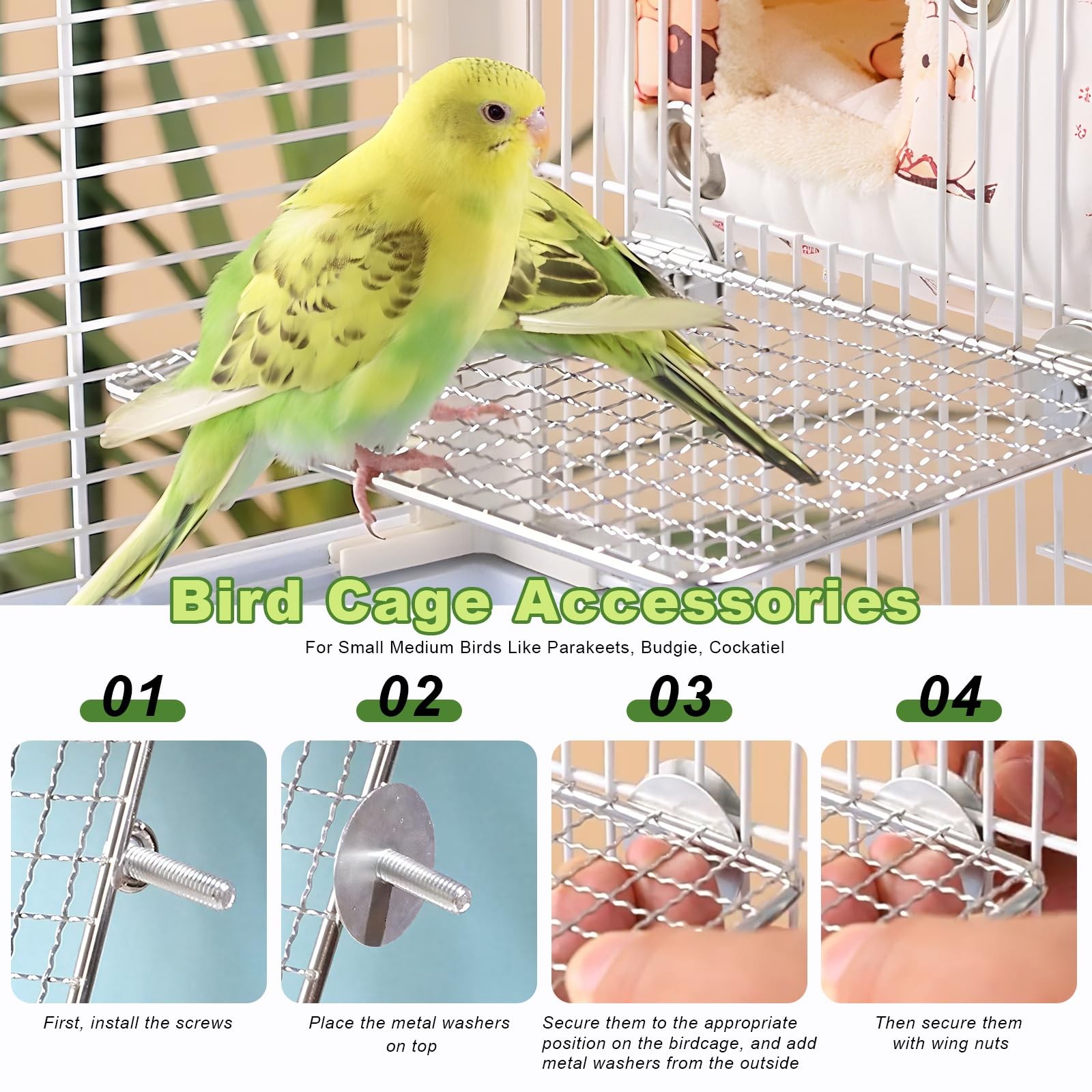 как выглядит FUATY Stainless Steel Bird Perch for Cage, Open-Grid Easy Clean Parrot Silver фото