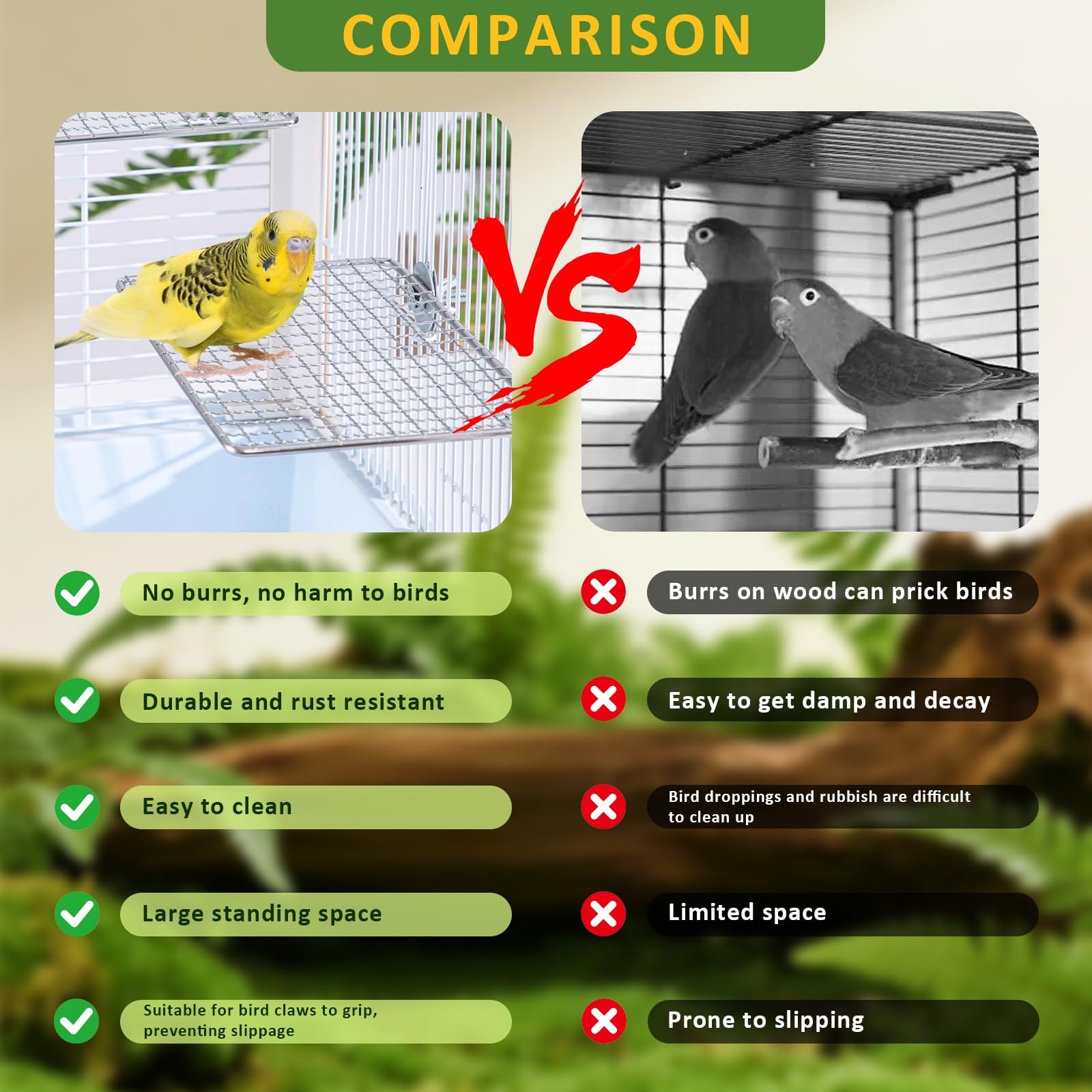 FUATY Stainless Steel Bird Perch for Cage, Open-Grid Easy Clean Parrot Silver