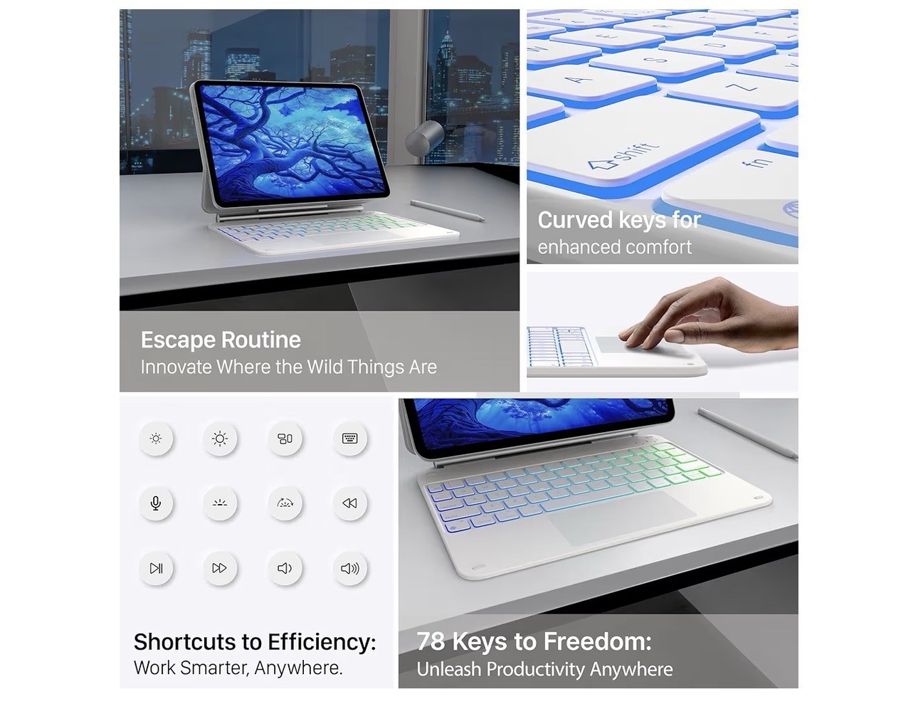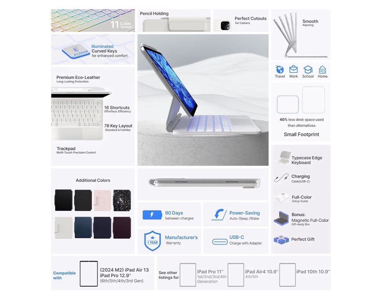 Typecase Edge iPad Air 13 iPad Pro 12.9 Keyboard Case with Trackpad White