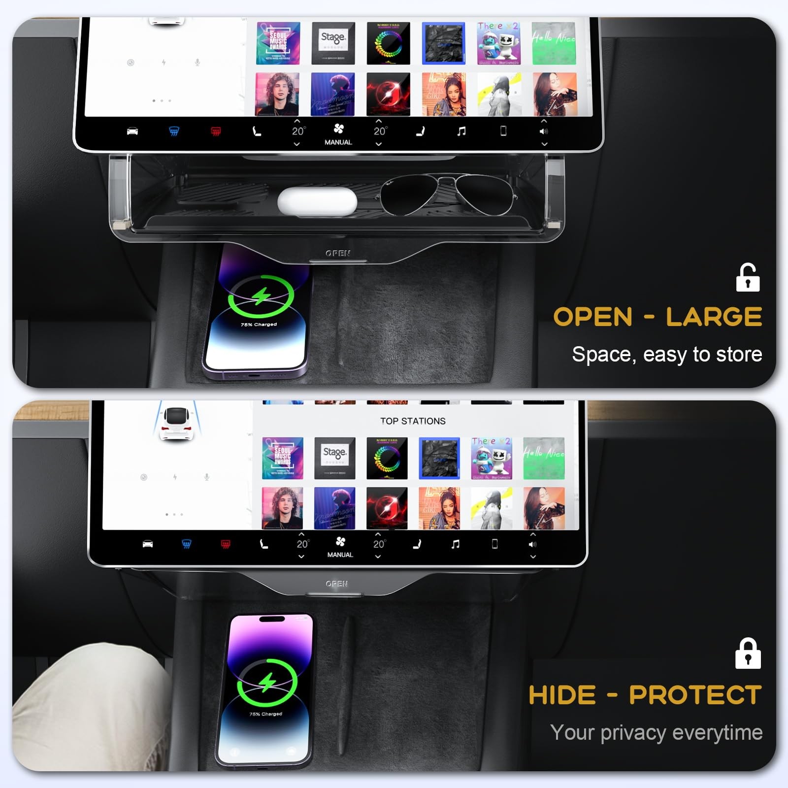 Tesla Under Screen Storage, Console and Organizer for Tesla Model Y and Model...